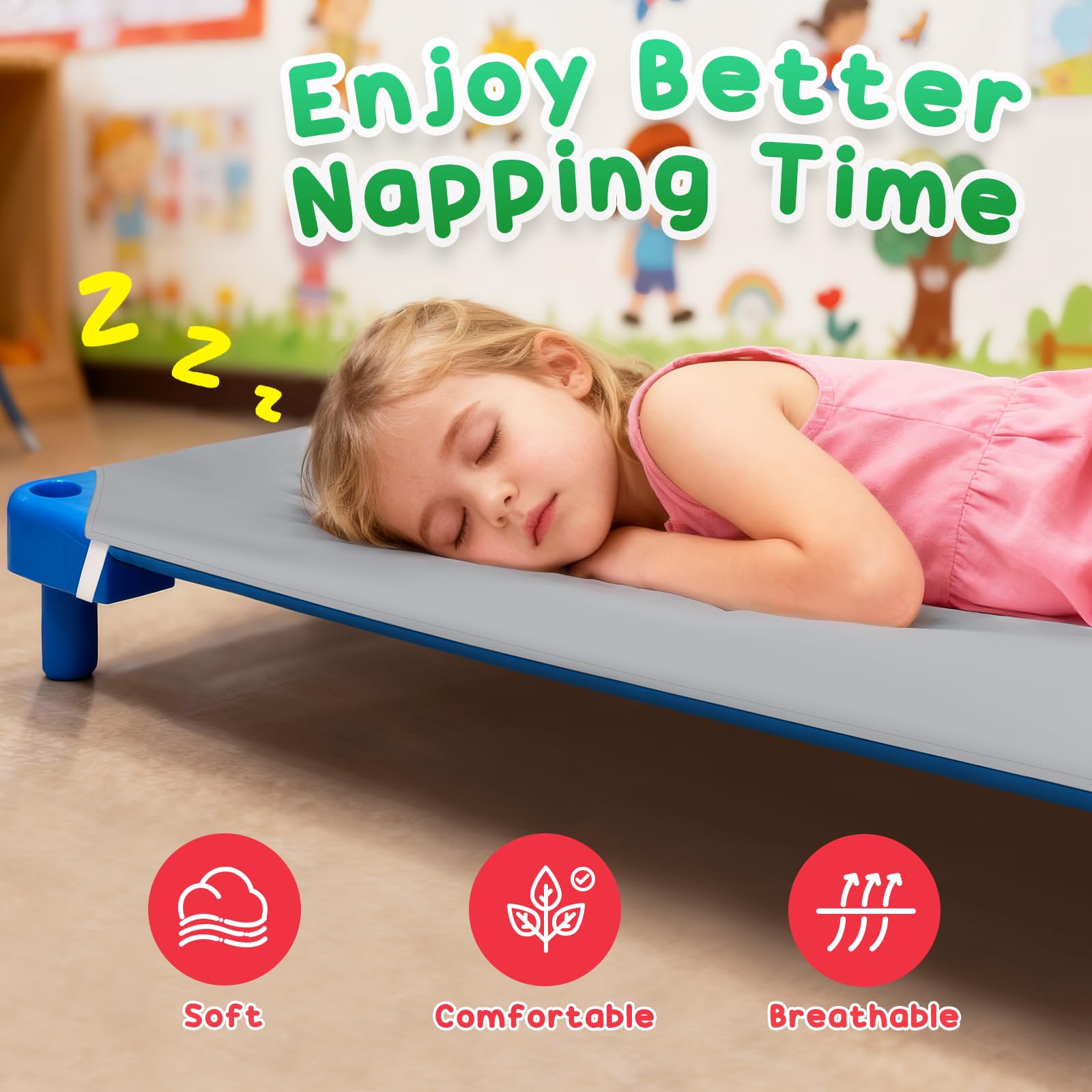 Skin Friendly Fabric: Breathable, hypoallergenic & durable brushed microfiber fabric, our daycare cot sheet provides true softness & comfort when toddler/kids sleep on