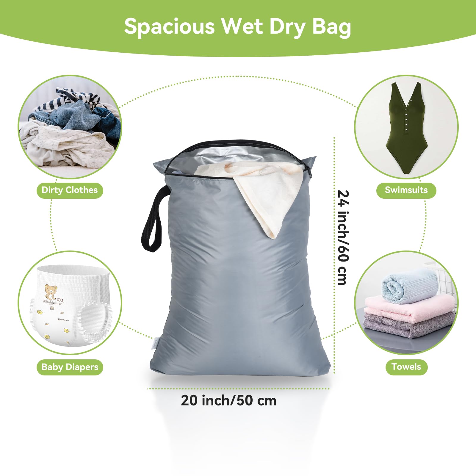 【Multi-purpose Laundry Bag】These wet dry bag baby can be used as baby diaper bags, dirty clothes bags, swimsuit bags, bathing suit bags, travel bags, gym bags, storage bags, cosmetic bags, handbags, wash bags, organizer bags, even as picnic bags. Compact and foldable design is great for use when go outside, go travel or daily organize.