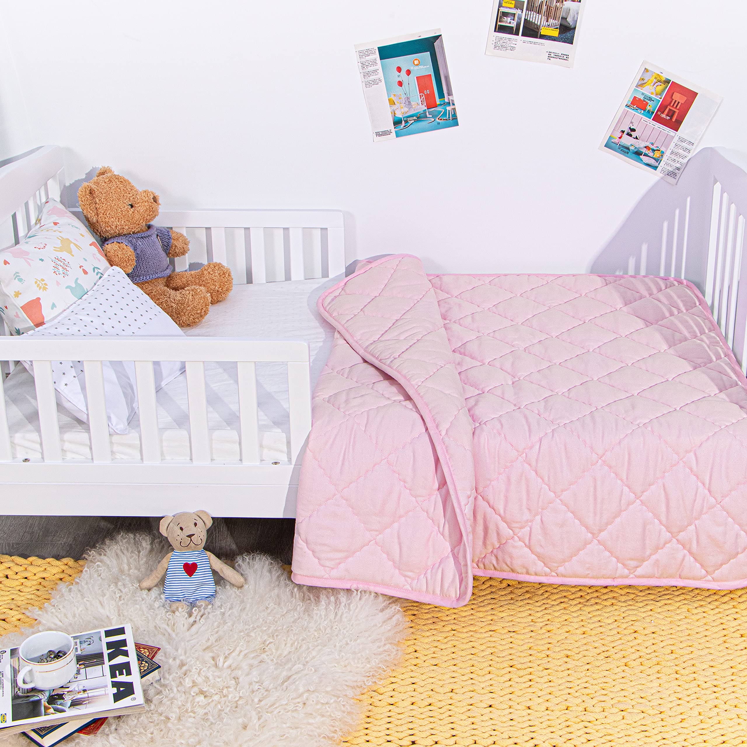 Cozy comforter: Our toddler quilt is made of premium quality microfiber, and filled with thermal fiber. Our quilt is ultra soft, fluffy and not stuffy, and it will help your little lover stay warm in the winter and cool in the summer.