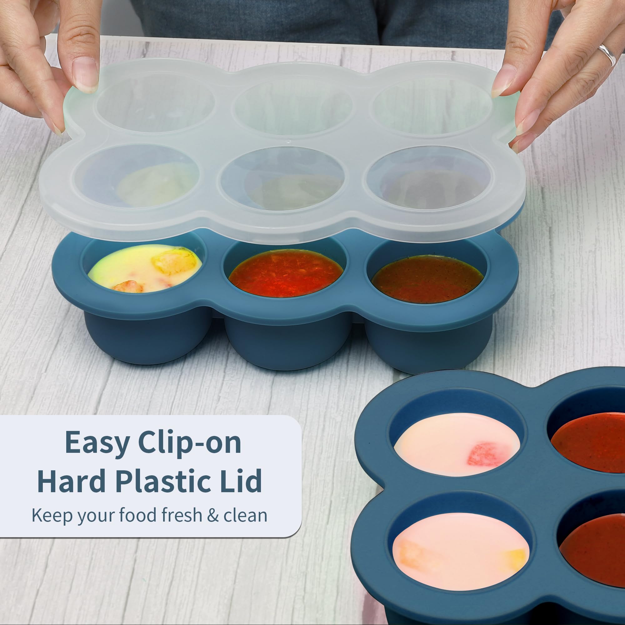 【PREMIUM CLIP-ON HARD PLASTIC LID】 Every baby Food Storage Container comes with a BPA-free durable plastic lid that keeps your freezer mess-free. The easy-clip-on design lid ensures food freshness