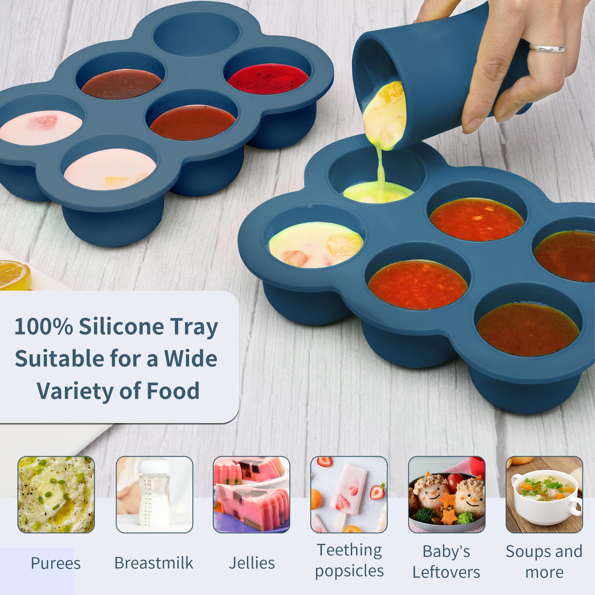 【MESS-FREE WIDE REINFORCED BOTTOM】 Hiwood Silicone Freezer Molds has a sturdy wide bottom for mess-free meal preparations and perfect for stacking. Easily transport baby food and breast milk from countertop to freezer