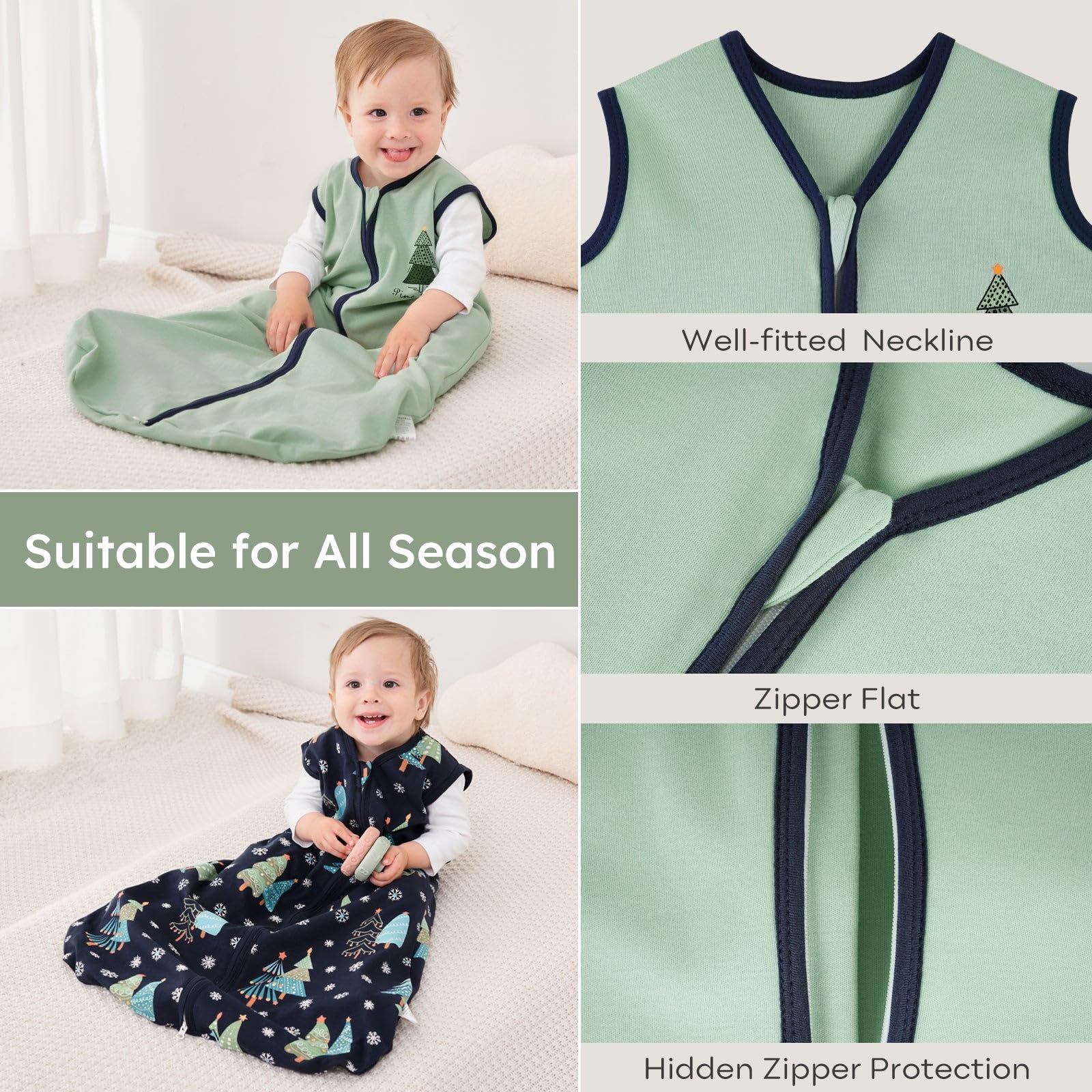 Lightweight 0.5 TOG - The sleeveless design and 0.5 TOG, Sleep sacks is suitable for moderate temperatures from 75 to 80°F as an ideal option for spring, summer, autumn or taking a nap in air-conditioned rooms, keeping your baby snug and comfortable while also reducing the risk of overheating.