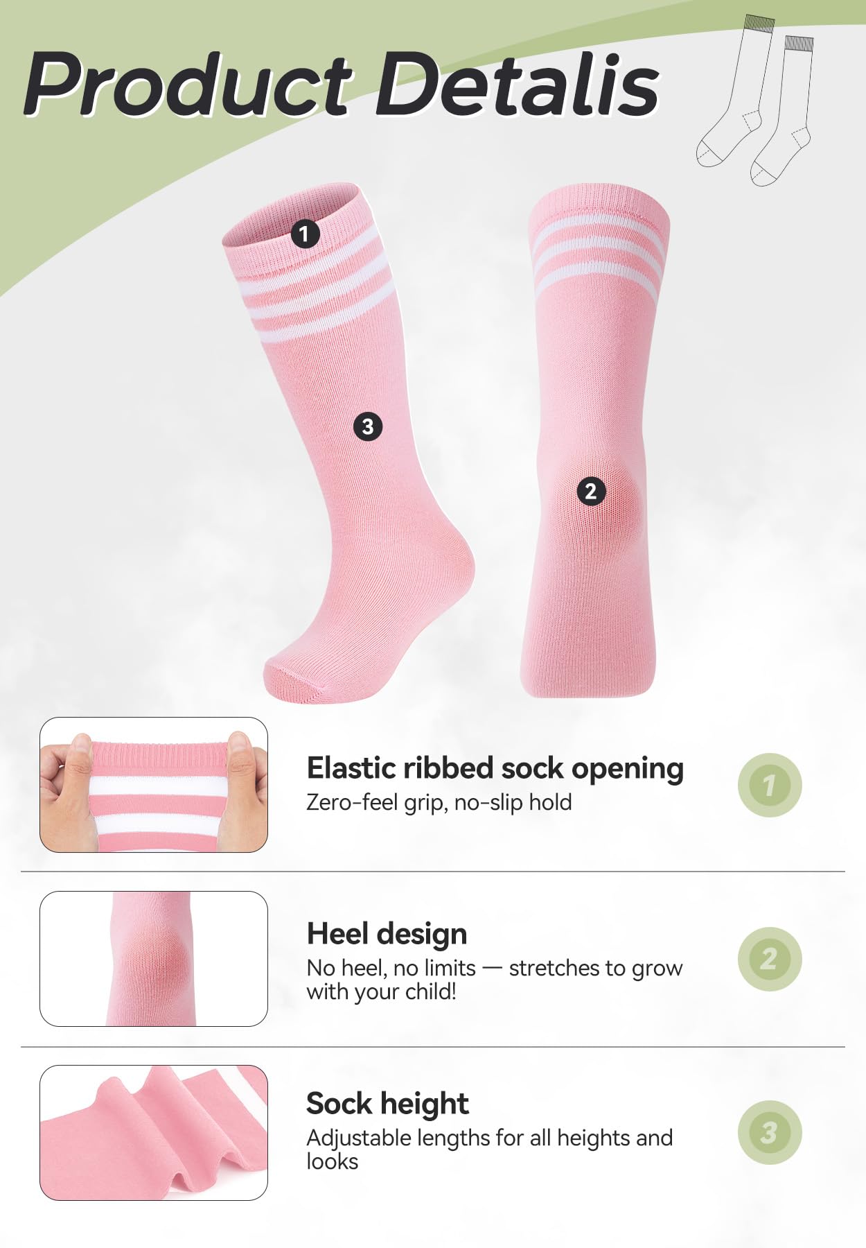 Perfect Fit for Growing Kids (Ages 4-12): These knee-high socks come in three sizes (M/L/XL) to fit children aged 3-14, with stretchy, snug cuffs that stay put without slipping. The breathable cotton-spandex blend ensures all-day comfort for school, sports, or play.