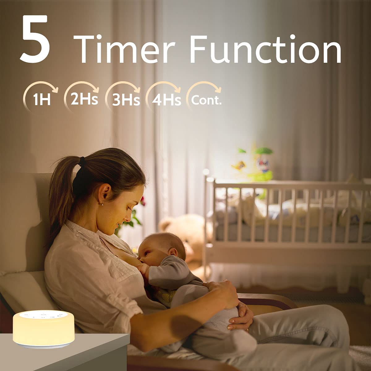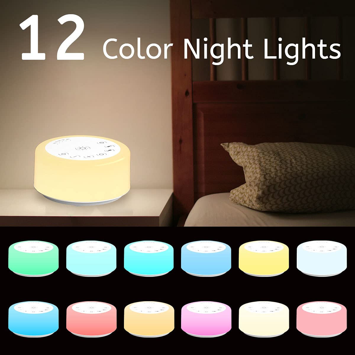 【12 Night Light Colors】 There are 12 kinds of light colors so that you can choose the color suitable for you according to different scenes. This white noise machine can facilitate your parent-child interaction, indoor lighting, baby feeding and decorative environment, etc.