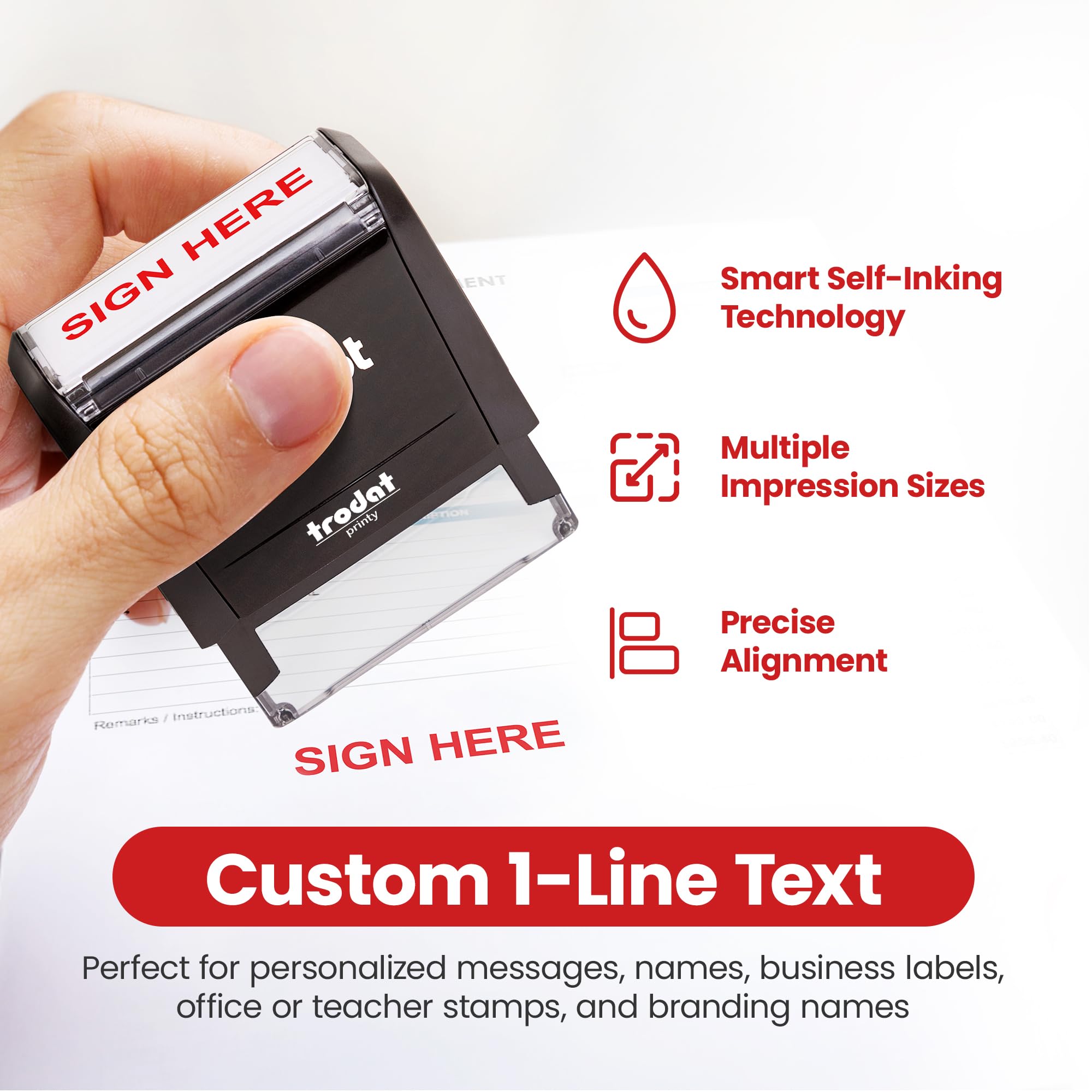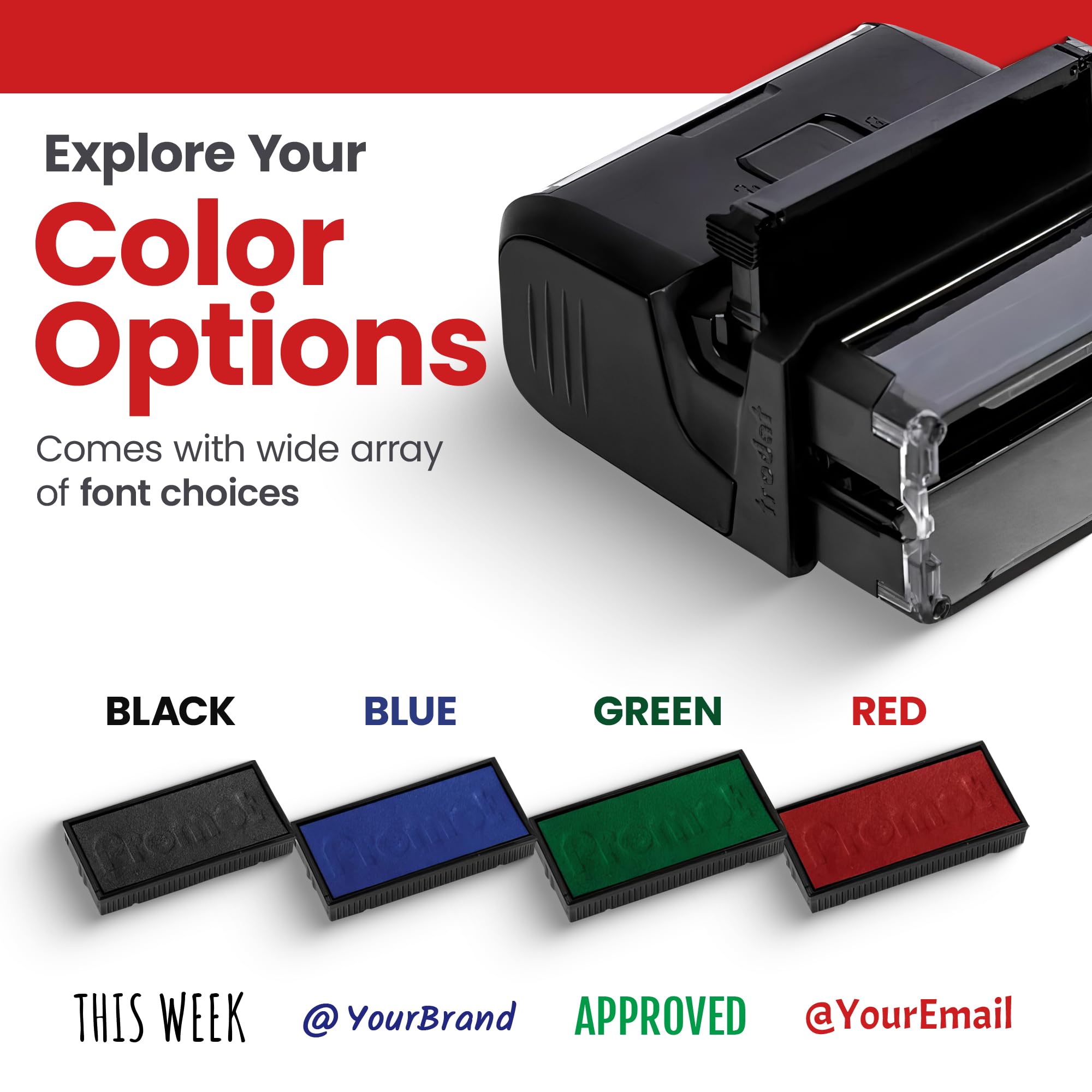 Self-Inking for Clean, Hassle-Free Stamping Preloaded and refillable, our self-inking stamp delivers precise prints in black, blue, green, or red. Ink releases only when pressed for sharp, consistent results.