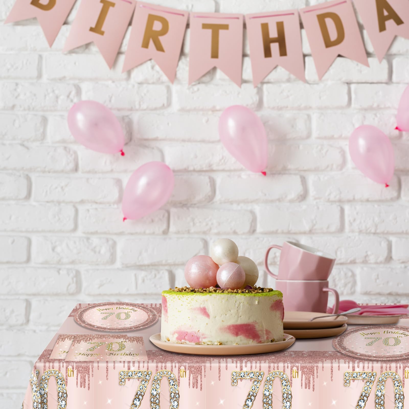 【SWEET 70th BIRTHDAY PLATES FOR WOMEN】The vintage 1955 disposable dinnerware comes with 7" paper dessert plates *20, 6.5" napkins (3 layers) *20 and tablecover *1. The durable dinnerware set allows you to serve 20 guests at one time