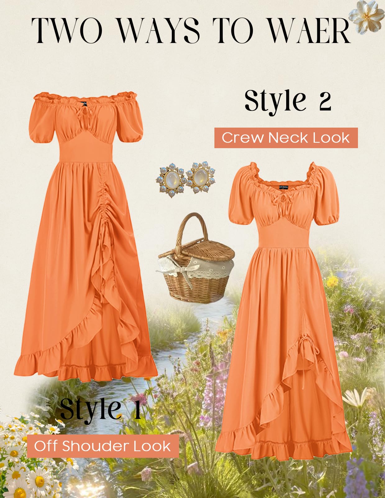 🌼【Design】Corset dress is a versatile piece that effortlessly switches between a short-sleeved, elegant Victorian style and a jaw-dropping, sexy off-the-shoulder look. Its ability to transform will leave everyone in awe of your fashion prowess.