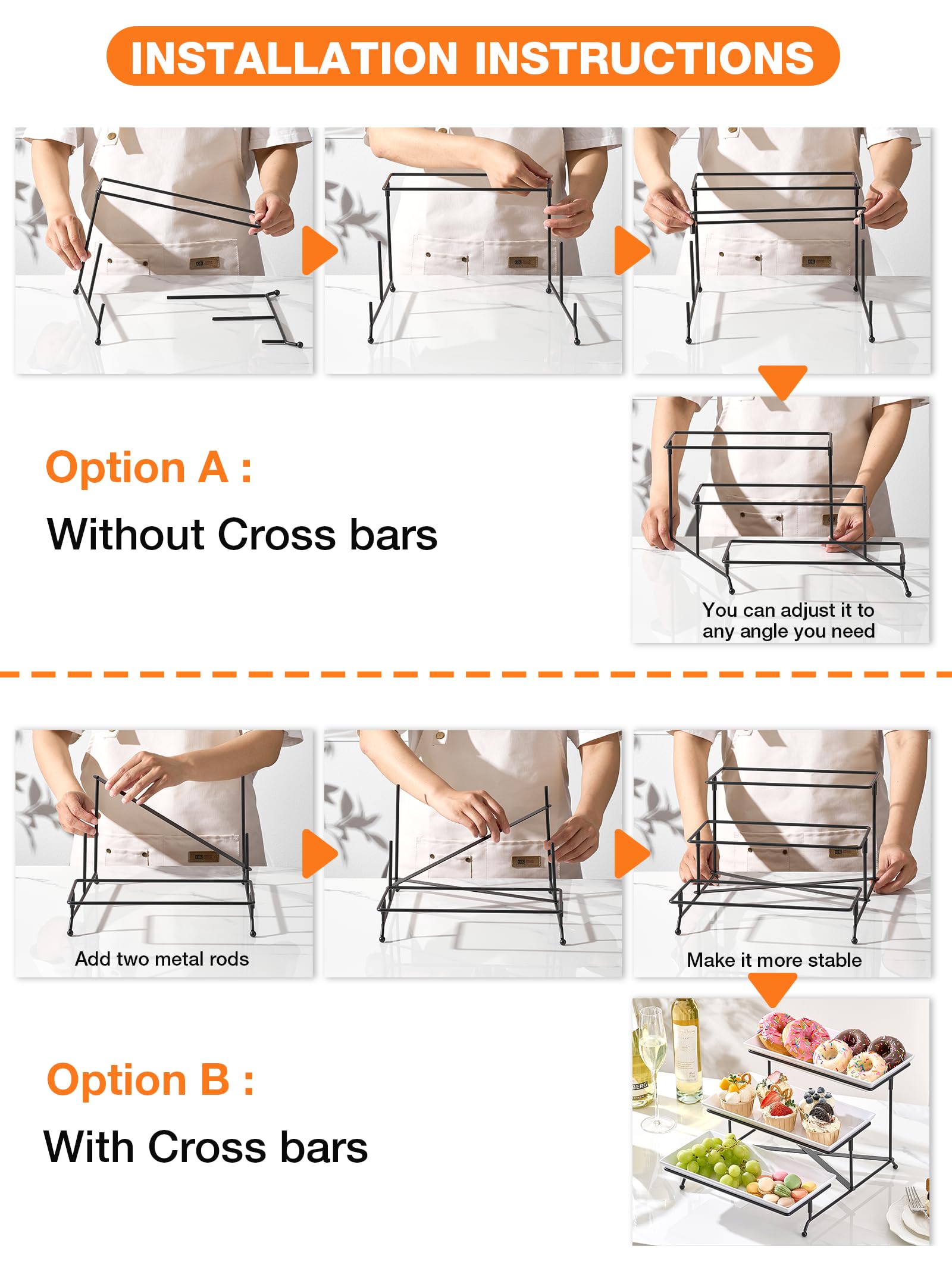 3 TIER SERVING TRAY DISPLAY: The 3 tiered tray stand allows you to show a variety of treats in one compact space. The ample surface area allows them to hold a greater variety of foods, such as cakes, fruits, desserts, appetizers, snacks, etc. The white serving plate can also be used individually for daily use.