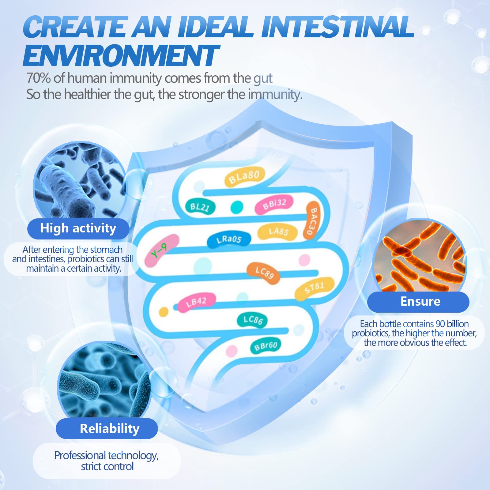 Quality Assurance: Our probiotic supplements are GMP-approved and third-party certified.The Gastrointestinal health and immunity health are very important for people,so we guarantee quality, purity and effectiveness.