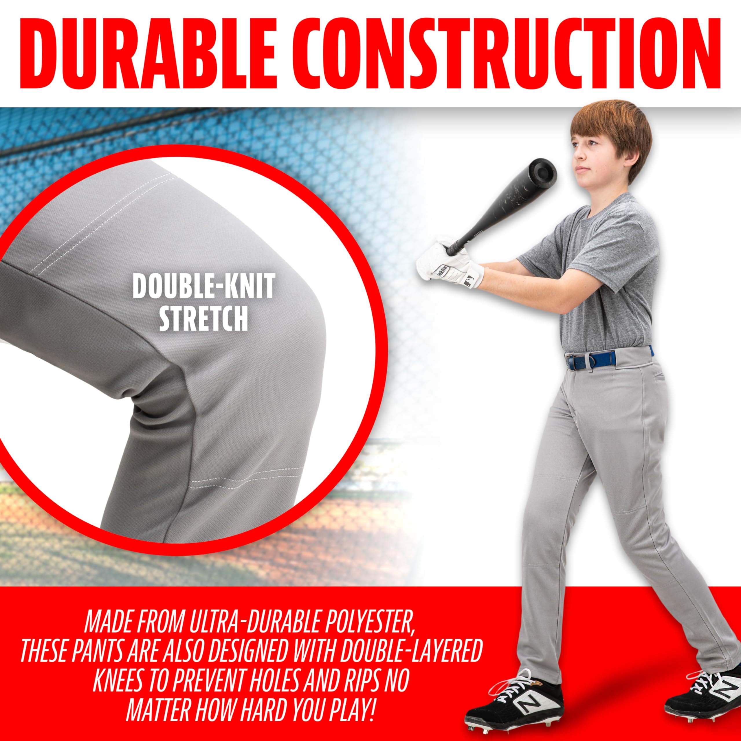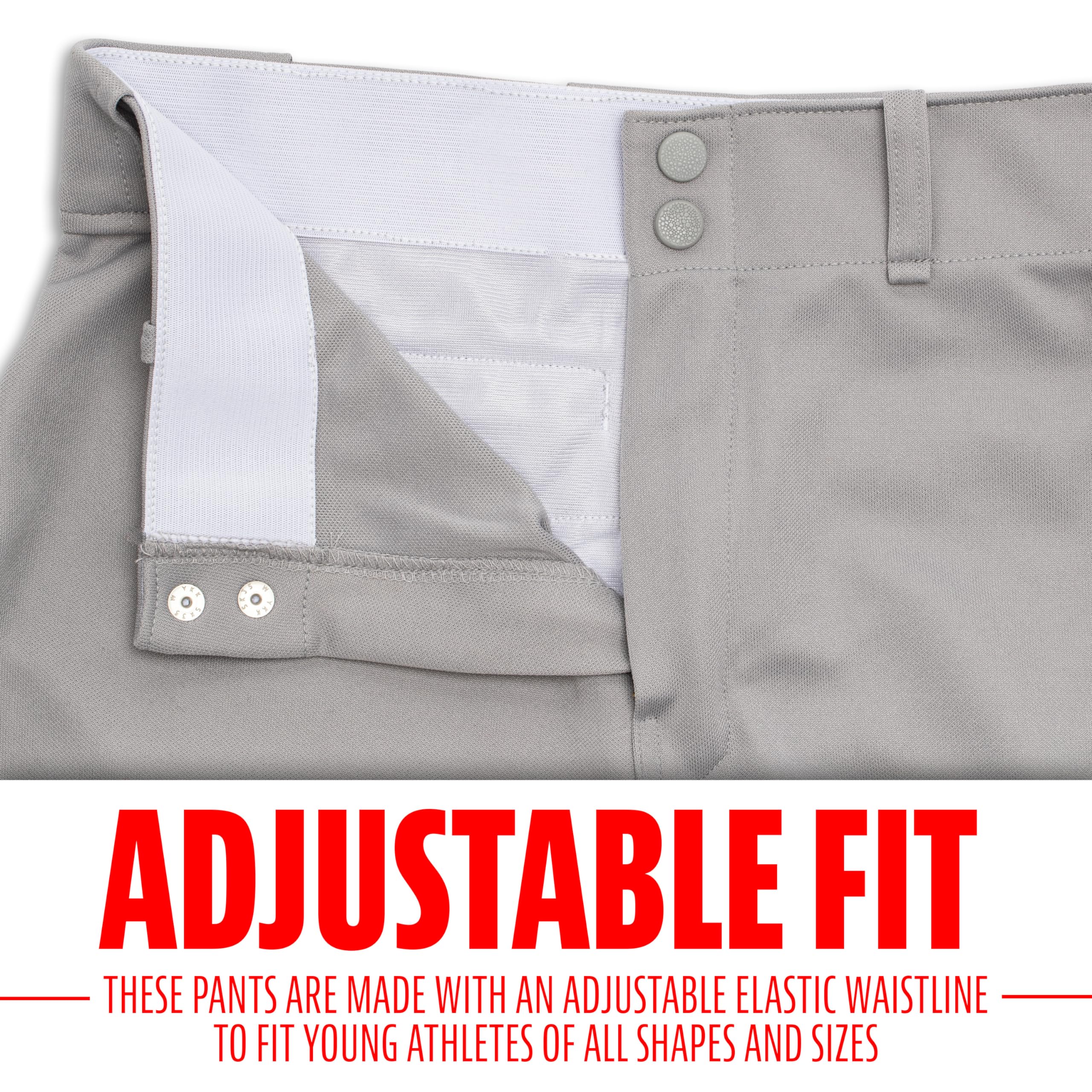 ADJUSTABLE FIT: These youth baseball and softball pants are made with an adjustable elastic waistline to comfortably fit kids of all shapes and sizes
