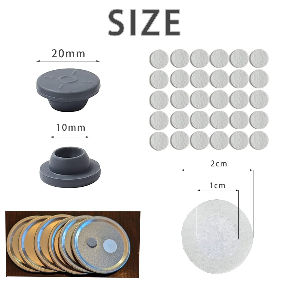 Package include:Get everything you need for successful mushroom cultivation with our package of 64 synthetic filter stickers (20mm diameter) and 100 rubber stoppers (13.2mm diameter)