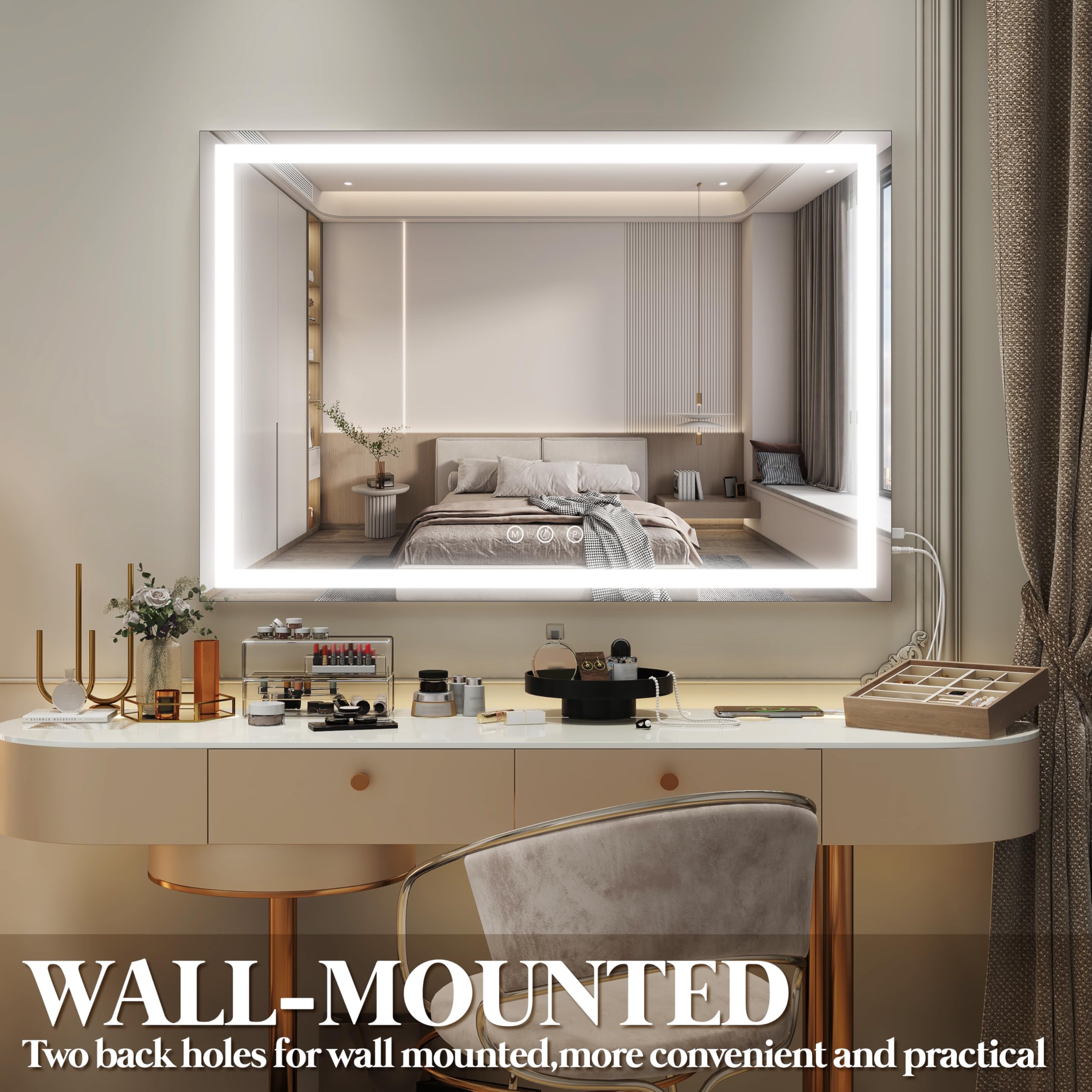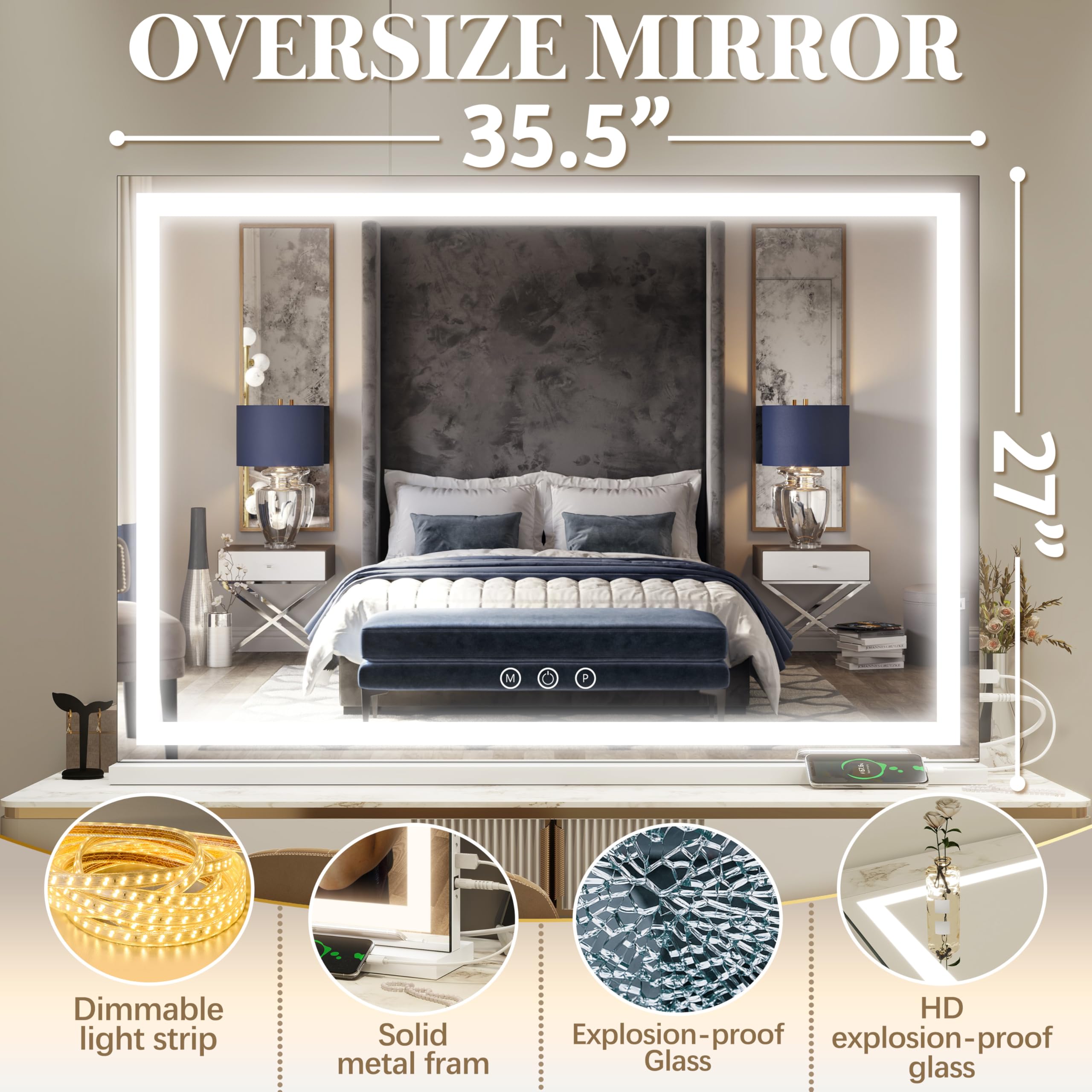 🌸【Minimalistic Design】 The Vanity mirror with 35.5"W X 27"H provides a perfect upper body view. Features makeup mirror is perfect for tweezing & grooming with accuracy