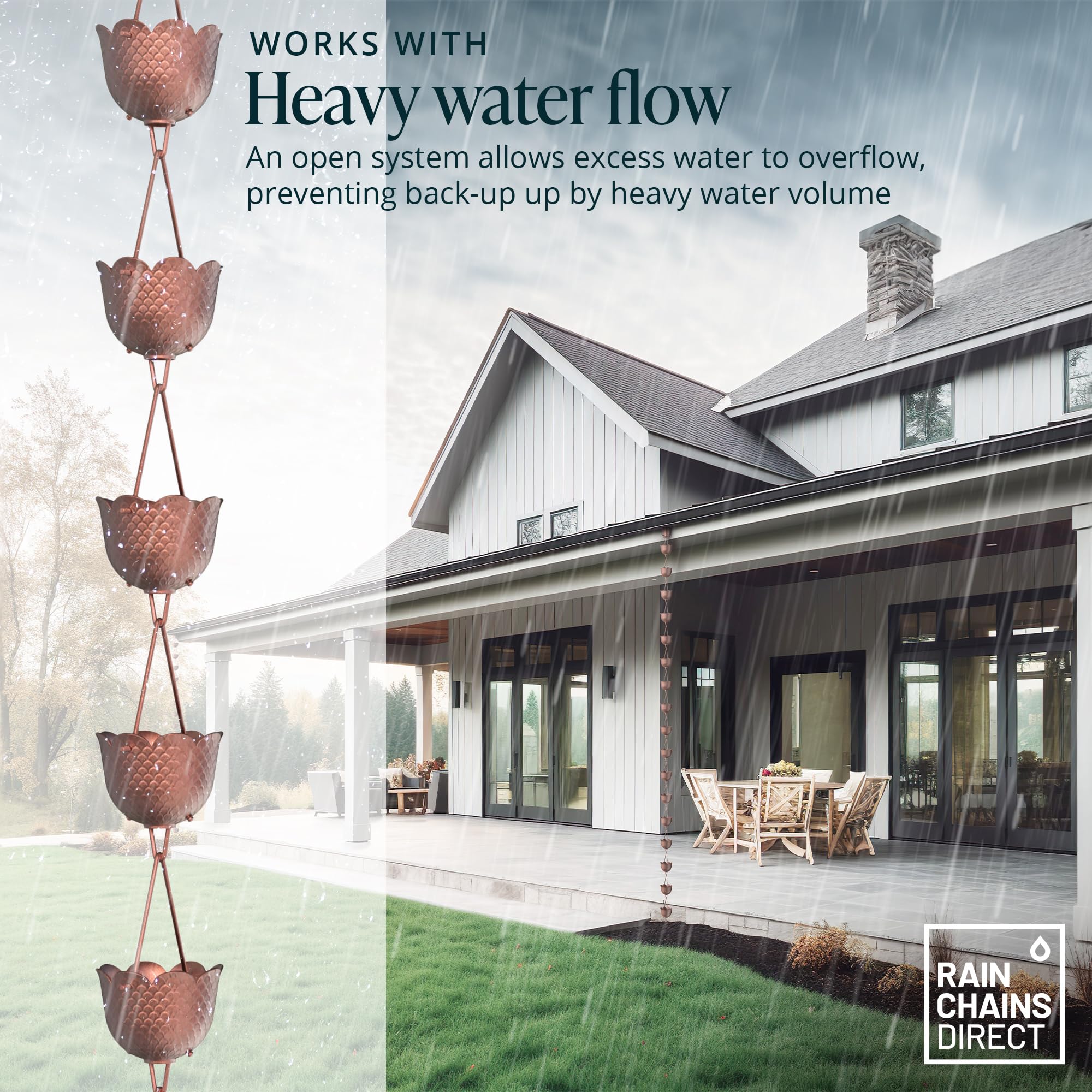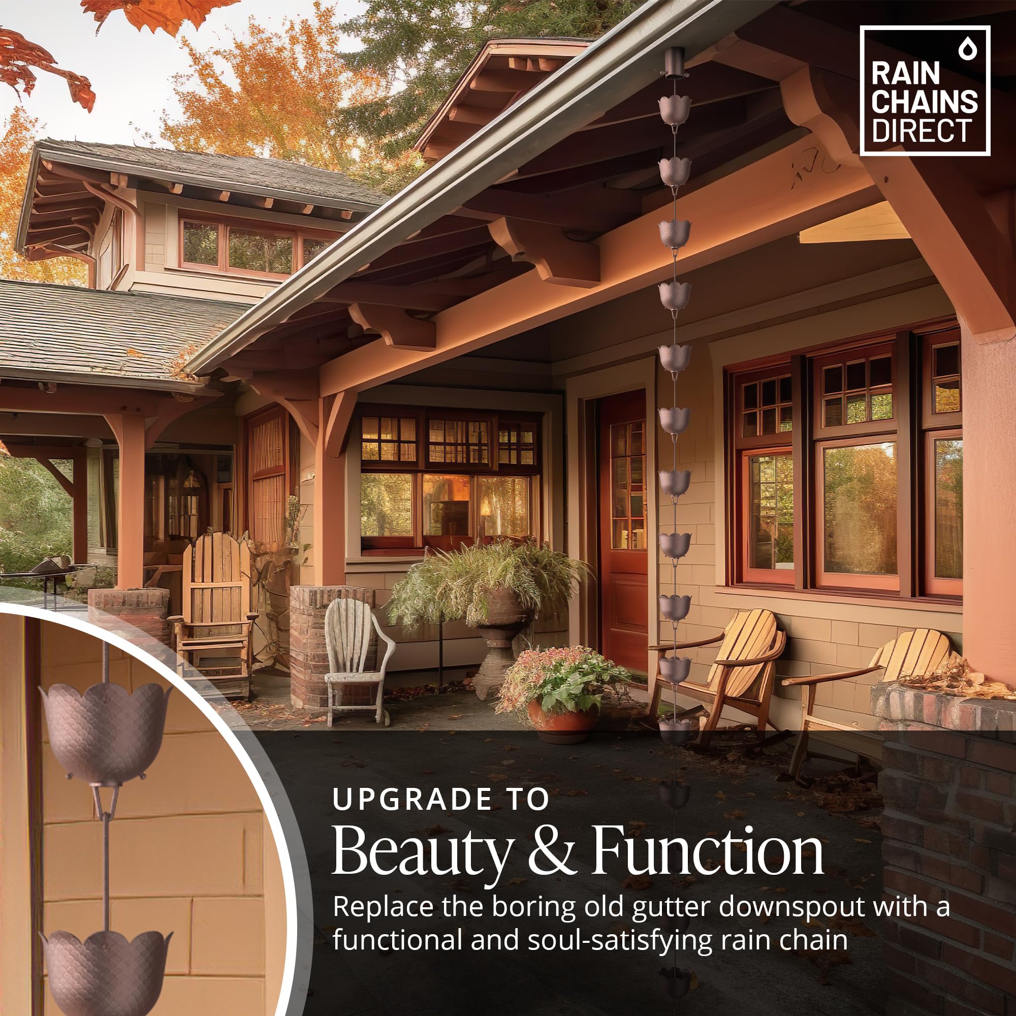 Rain Chains Direct Quality Advantage: We use the highest quality materials and craftsmanship in the production of all our rain chains and accessories. If you don’t completely love your purchase, simply return it for an easy refund.