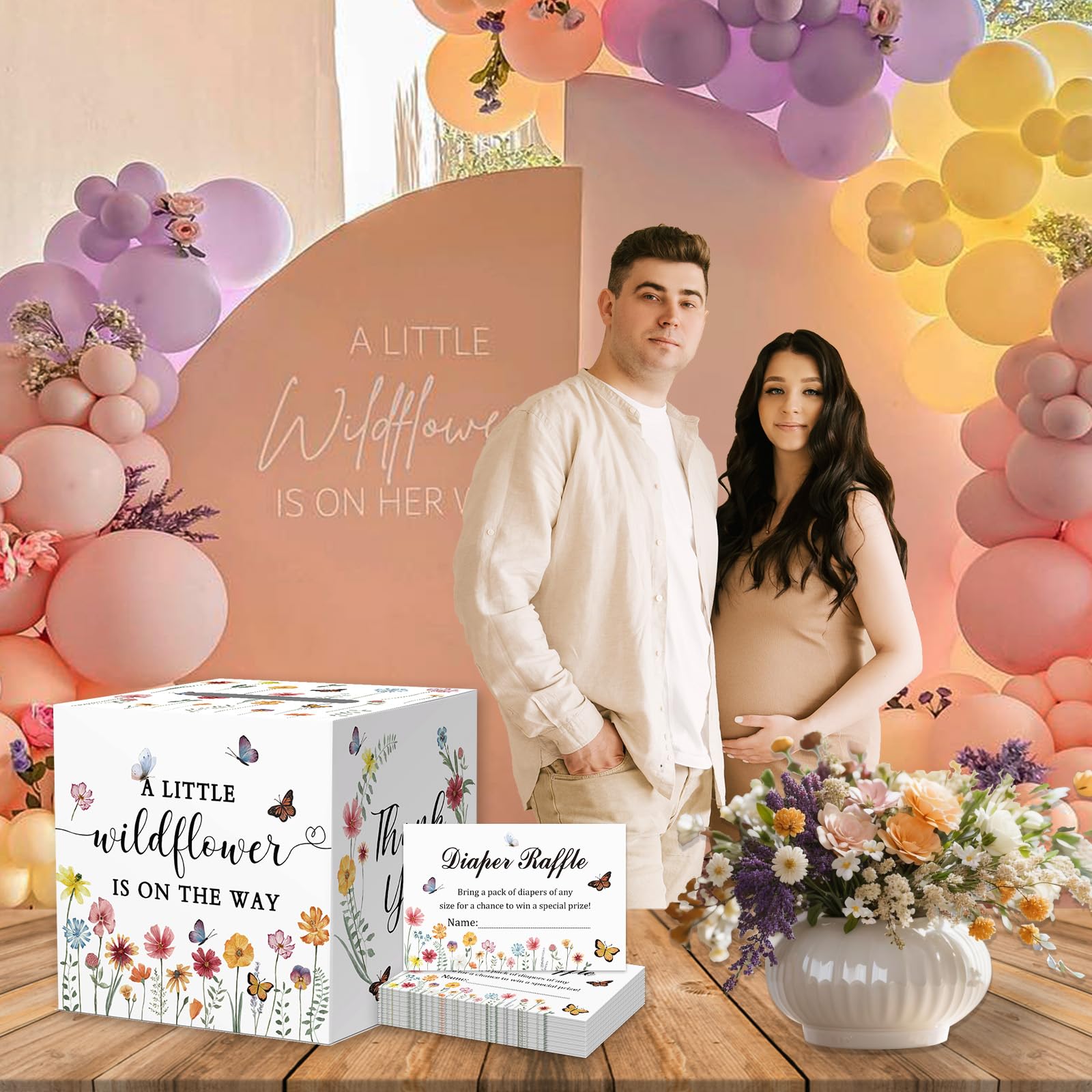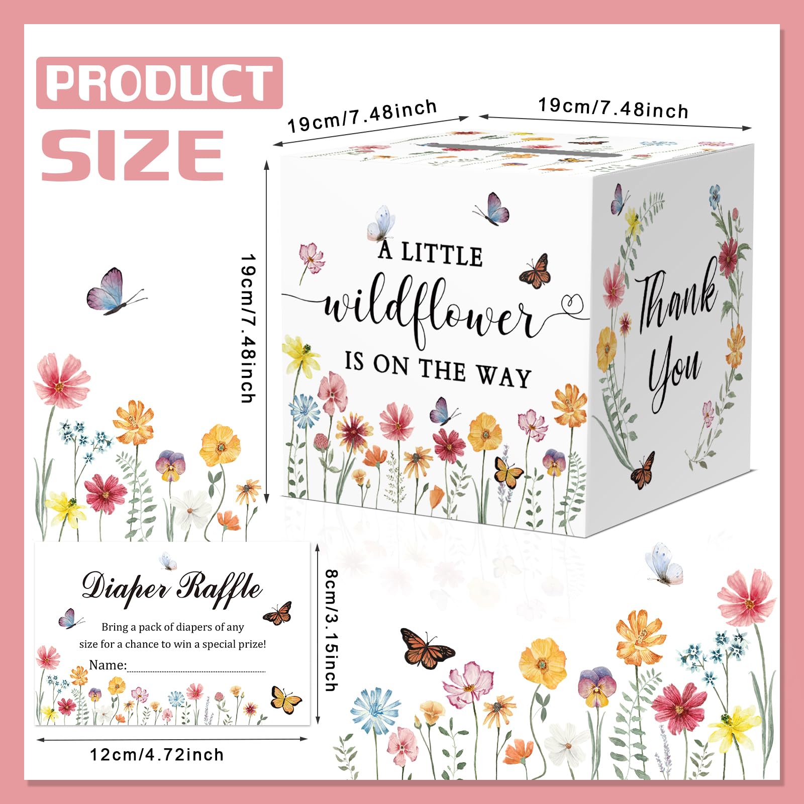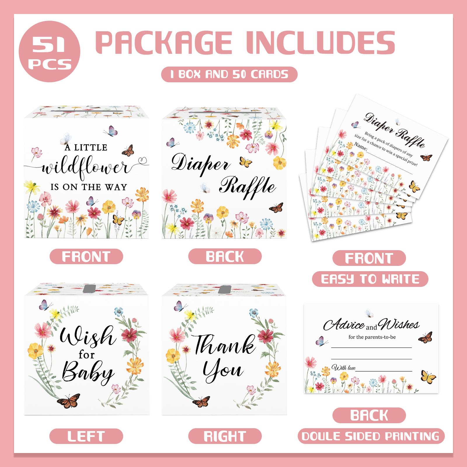 【Perfect Combination】Our wildflower baby shower game kit includes 1 wildflower diaper raffle box (7.48x 7.48x 7.48 inches) and 50 double-sided printed raffle tickets. Guests can write their some advices and wishes, allowing you to cherish beautiful memories from this special occasion.