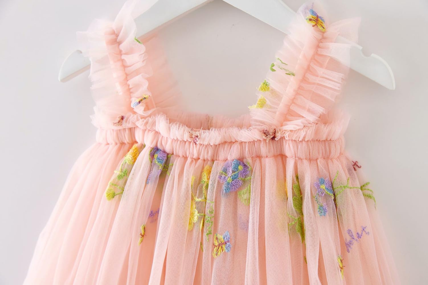 ♥The tutu dress made by soft and fluffy tulle with lining which is very comfortable.Elastic Shoulder strap can fit baby girls perfectly.The headband made by 5 pieces different artificial flowers which is very pretty for baby.