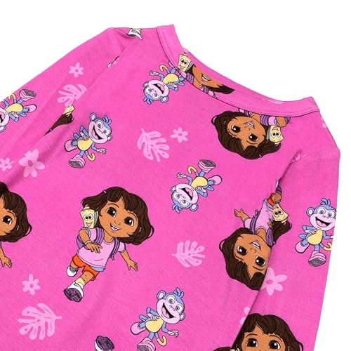 DORA THE EXPLORER PAJAMAS: Get your little girl ready for bedtime fun with Dora, Boots, Maps and more this 2-piece pajama Viscose Snug-Fit set. She’ll dream of adventures with her favorite characters! Officially licensed Dora the Explorer merchandise.
