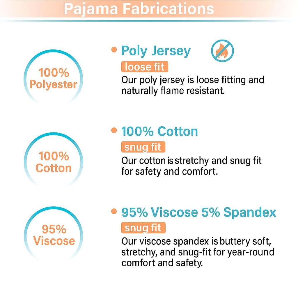 SAFETY & COMFORT: To ensure maximum comfort, choose the right size for your child to avoid clothing that is too long or too loose. These pajamas are manufactured in accordance with all clothing safety standards and are flame-resistant.