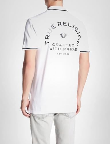 Description The True Religion Menβs Crafted with Pride Polo blends premium comfort with modern style, making it a must-have in men's polo shirts collections. Designed from soft cotton, this slim fit piece provides breathable comfort while maintaining its structure. A 2-button placket and polo collar give it a polished look, while contrast piping at the collar and sleeves adds standout detail compared to standard mens shirts. Signature elements like the embroidered horseshoe chest logo and βCrafted with Prideβ back branding showcase True Religionβs craftsmanship. Perfect for casual weekends, workdays, or evening outings, this versatile option ranks high among polo t shirts for men, offering a reliable mix of durability, comfort, and standout style. Available in multiple colors and sizes, itβs built for everyday wear and lasting appeal among shirts for men.