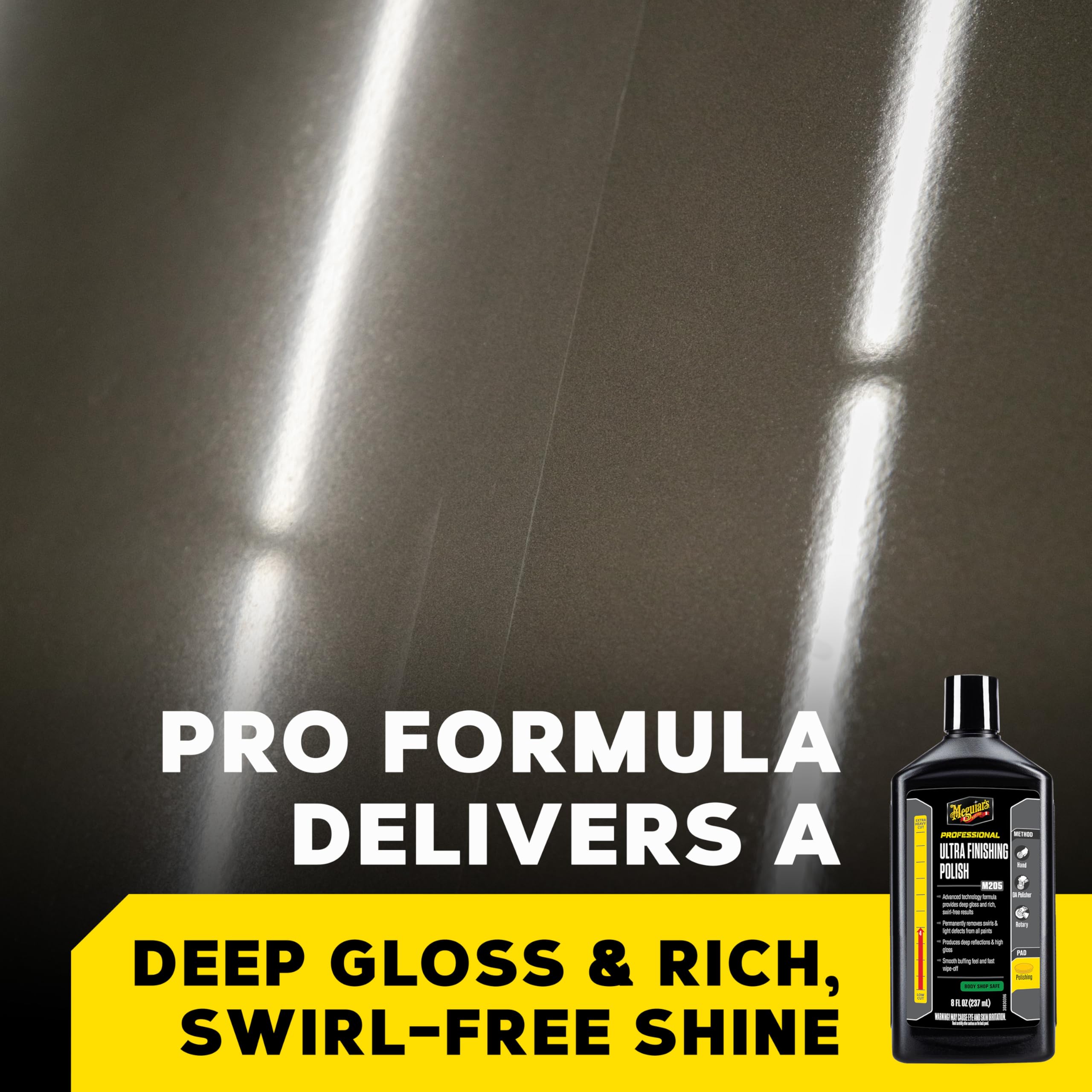 NO MORE SWIRLS: Meguiar's M20508 Mirror Glaze Ultra Finishing Polish permanently and efficiently removes swirls and light defects from all paint in favor of a deep gloss. This powerful car polish gets the job done and leaves a lasting finish.