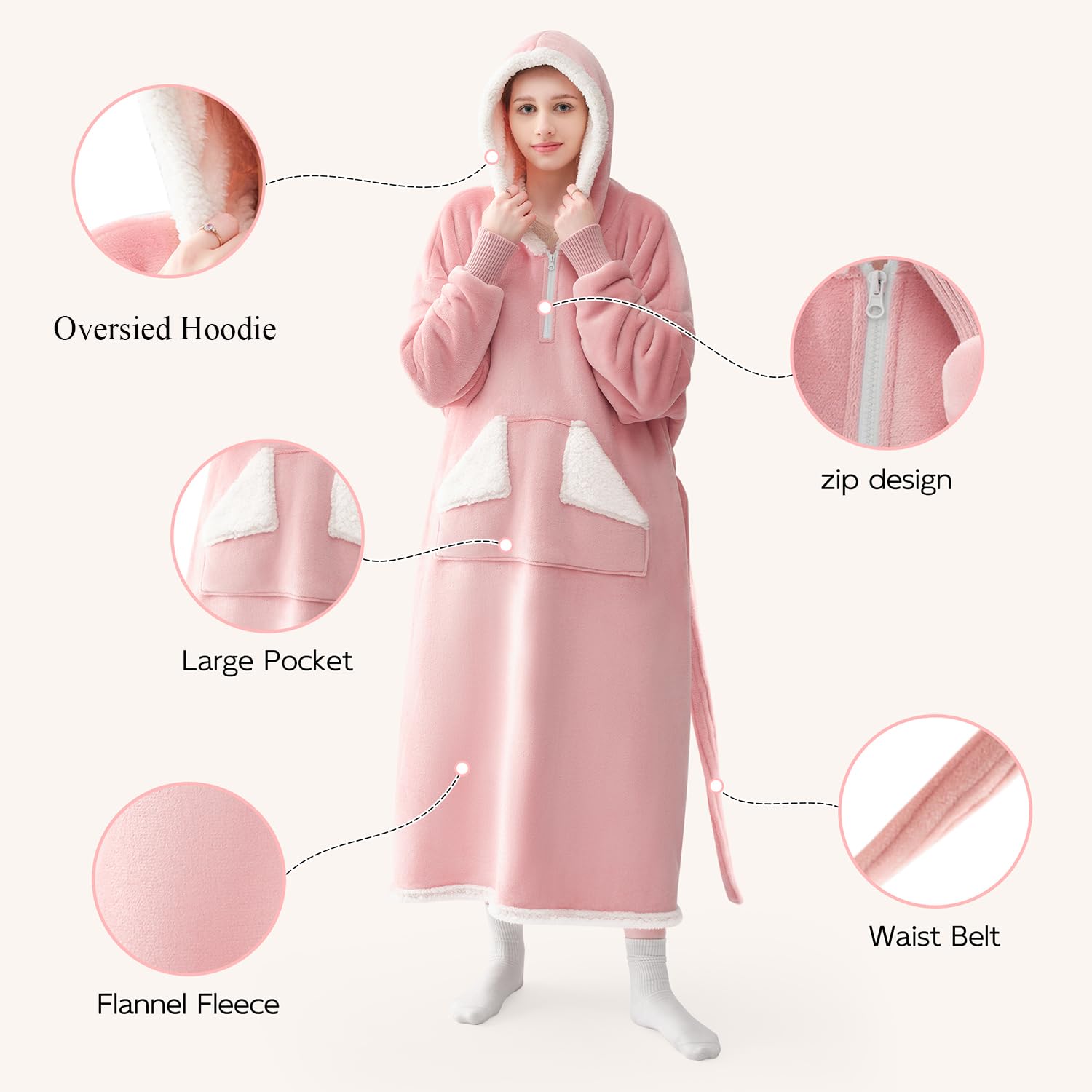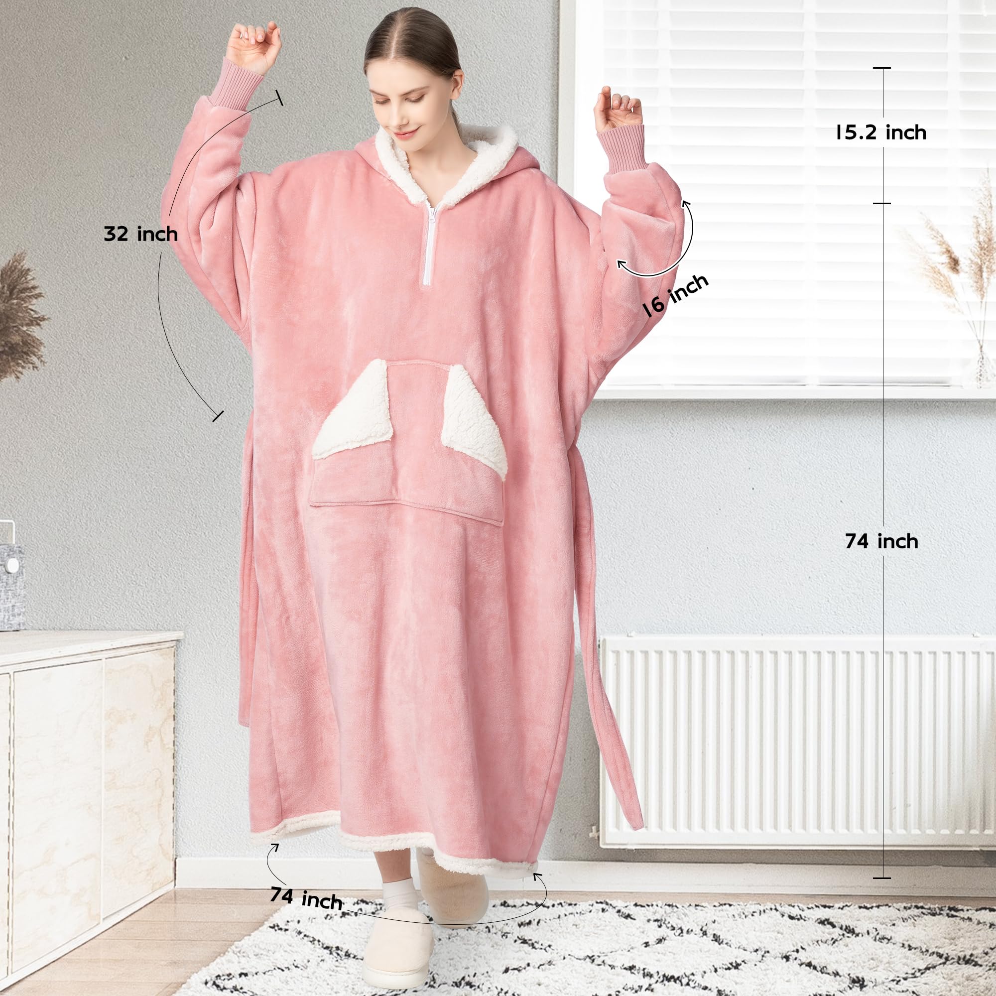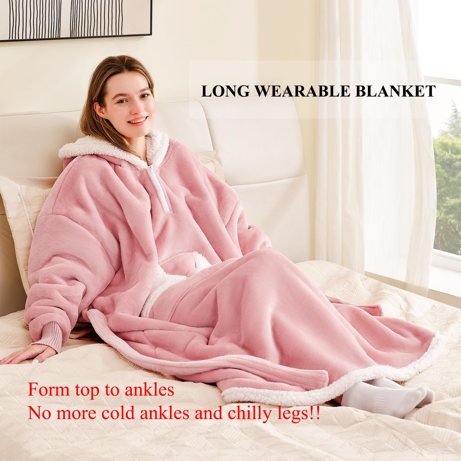 【LONG WOMEN BLANKET HOODIE】: Say goodbye to cold ankles and chilly legs. Our wearable blanket made with sherpa fleece and flanne is thoughtfully designed with an extended, ankle-length cut that offers complete coverage from top to ankle. No more chilly legs or cold ankle—just full-body warmth you can count on. Whether you're curled up on the couch, reading in bed, or sipping cocoa by the window, this extra-long hoodie blanket wraps you in head-to-toe comfort all winter long.