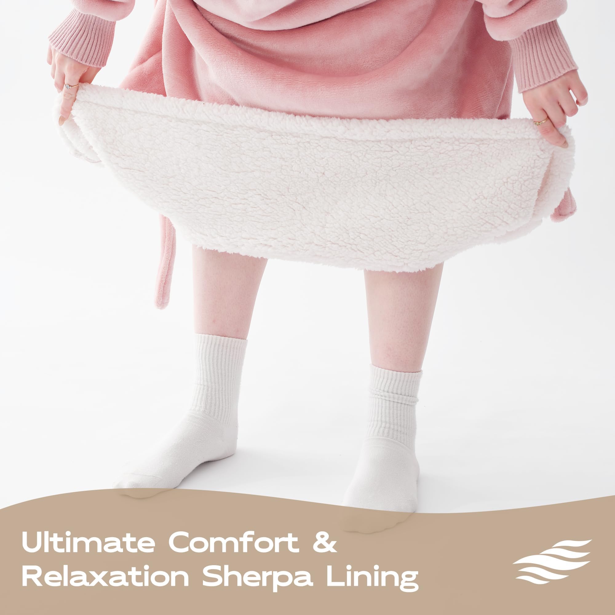 【OVERSIZED HOOD – COZY FROM THE TOP DOWN】: Crafted with an ultra-soft sherpa-lined oversized hood, this blanket hoodie provides extra warmth where you need it most—your head, ears, and neck. Perfect for relaxing indoors or stepping out for a moment, the deep hood creates a cocoon of softness, locking in body heat and shielding you from the cold. It’s cozy, comforting, and adds a stylish touch to your winter lounge wear.