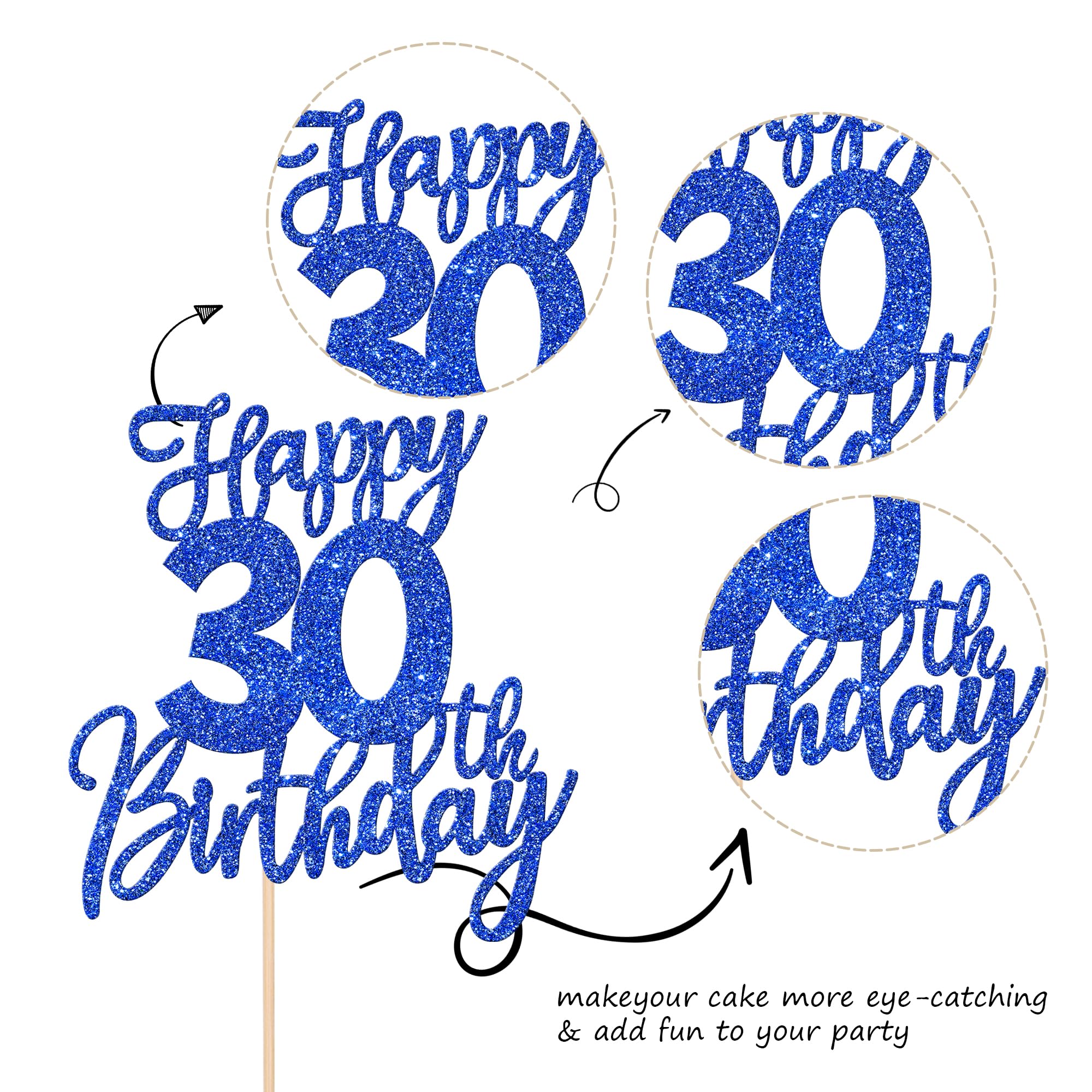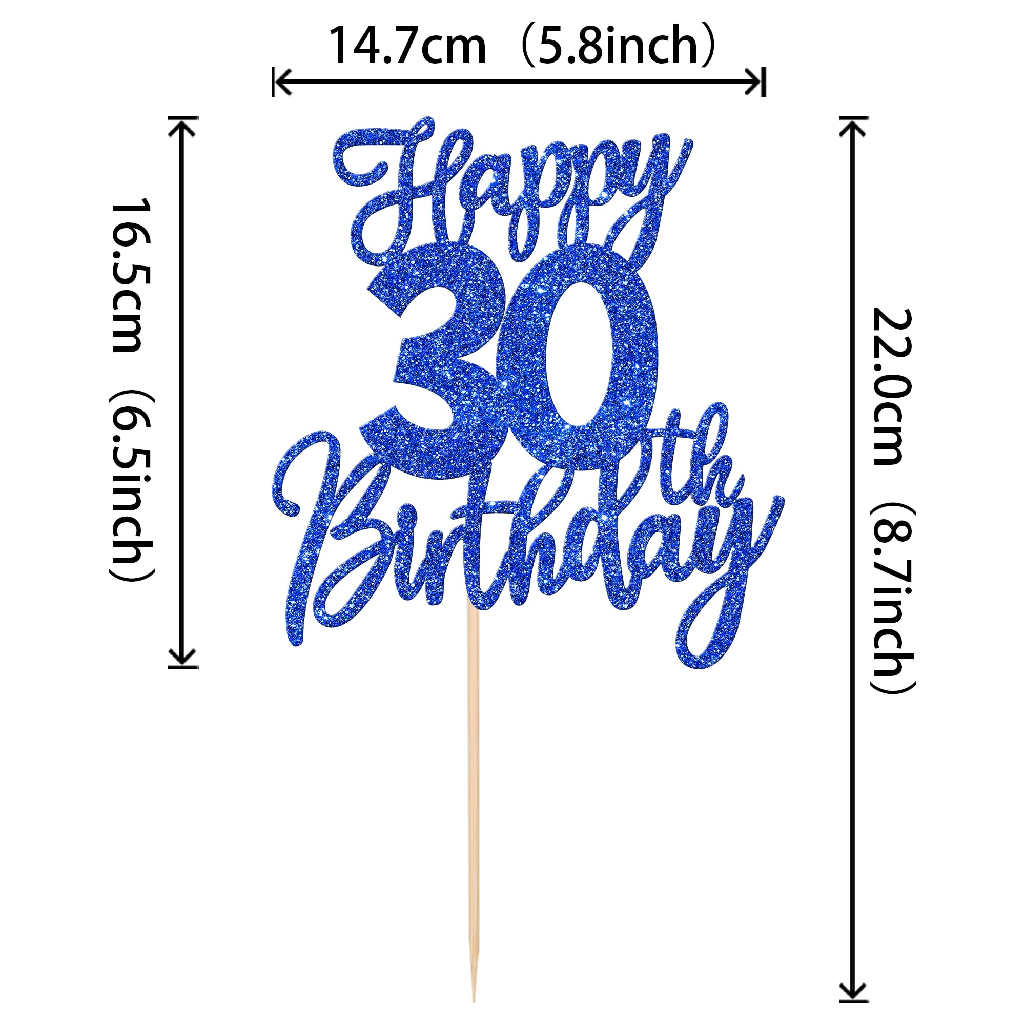Happy 30th Birthday Cake Topper for Happy 30th Birthday Anniversary Theme Party Cake Decorations Supplies Perfect for happy 30th birthday theme party, cheers to 30 years party,30th anniversary theme party cake decorations supplies. Pack of 1 pcs. The size is W 5.8 inch * H 8.7 inch / W 14.7 cm * H 22 cm ( with stick ) Made of high quality paper card stock and food grade sticks,thick and sturdy. This cake topper is one side glitter, another side is white, and this is intended for decoration only, please do not put them in oven or microwave. If the item you received has any defects, please contact us for refund.we will deal with it within 24 hours.