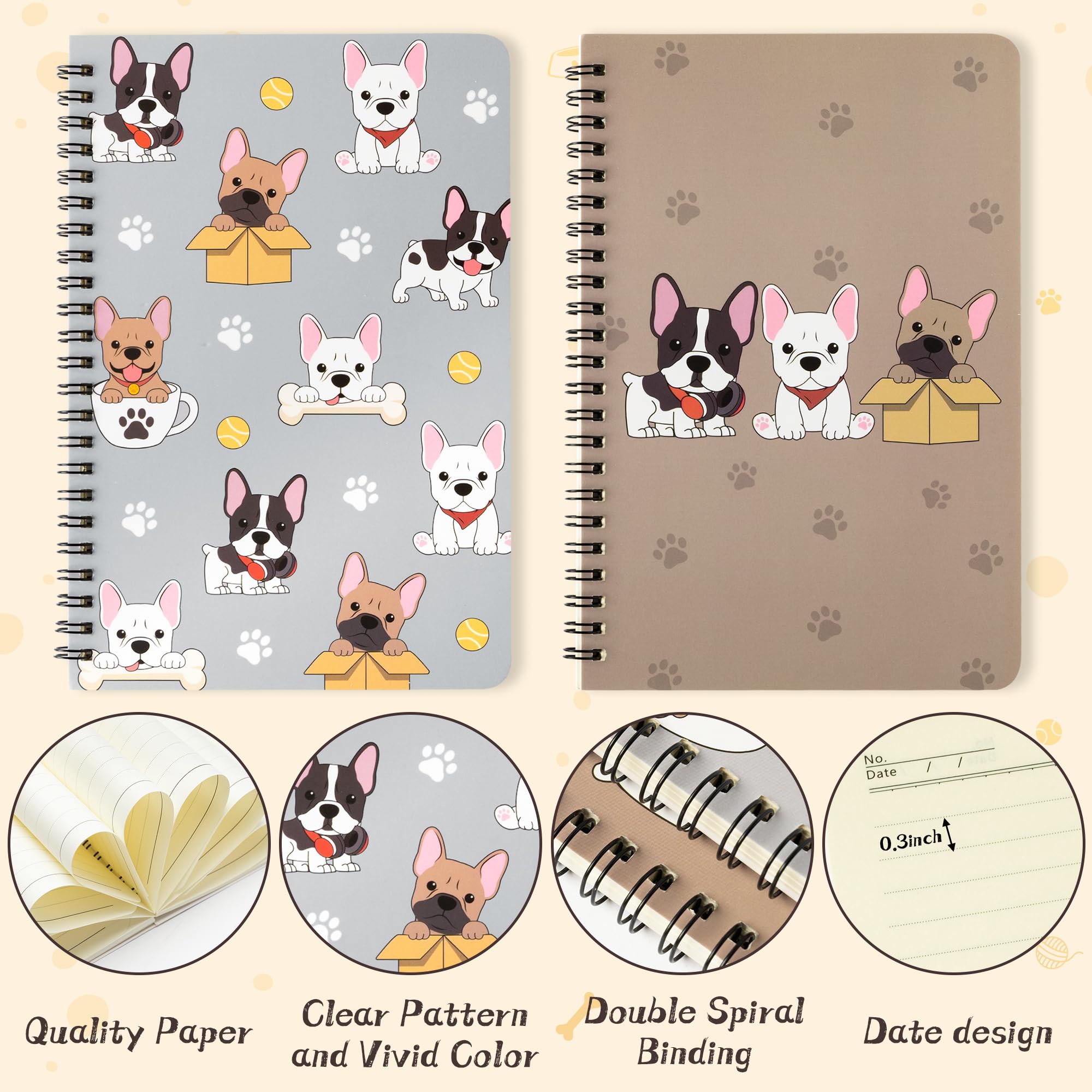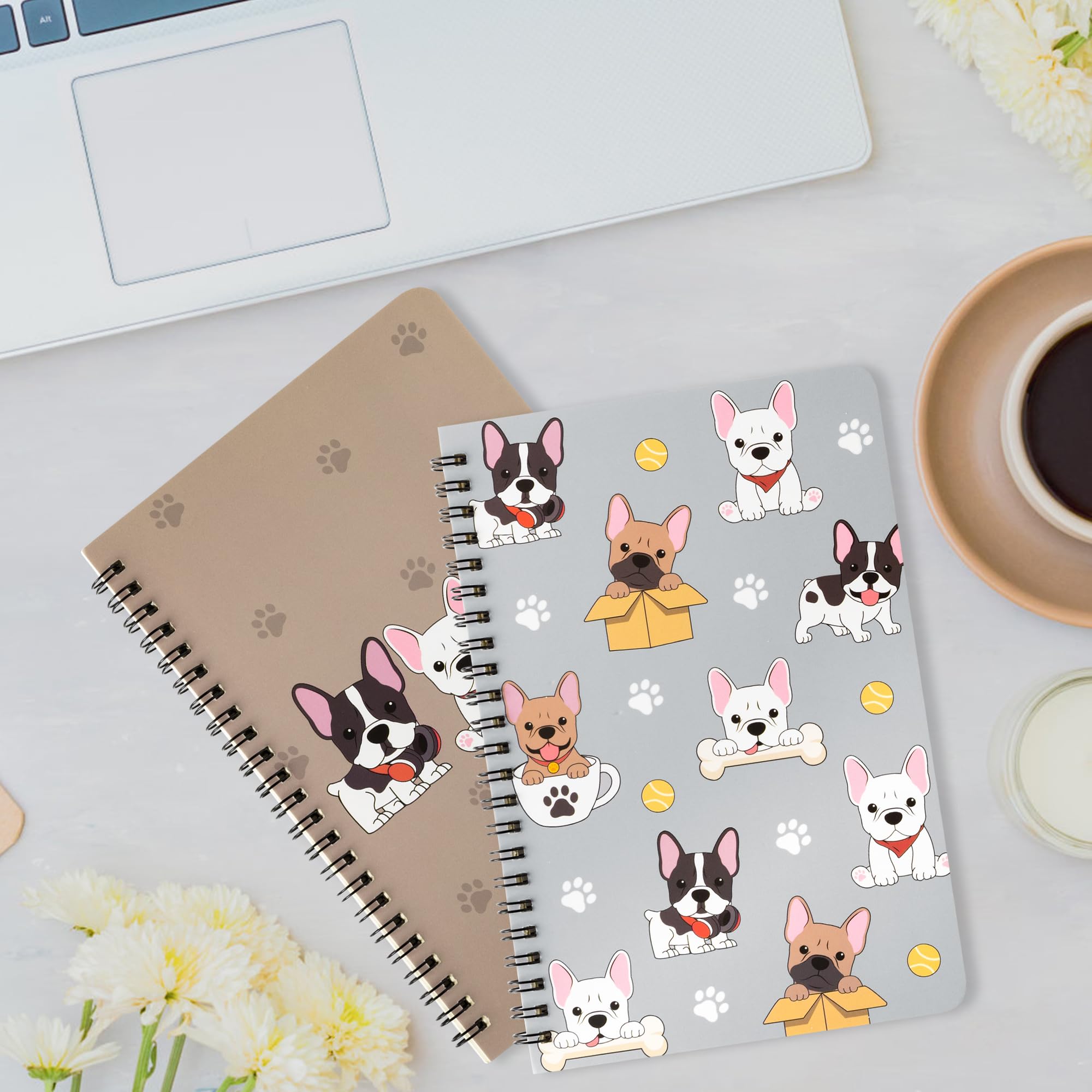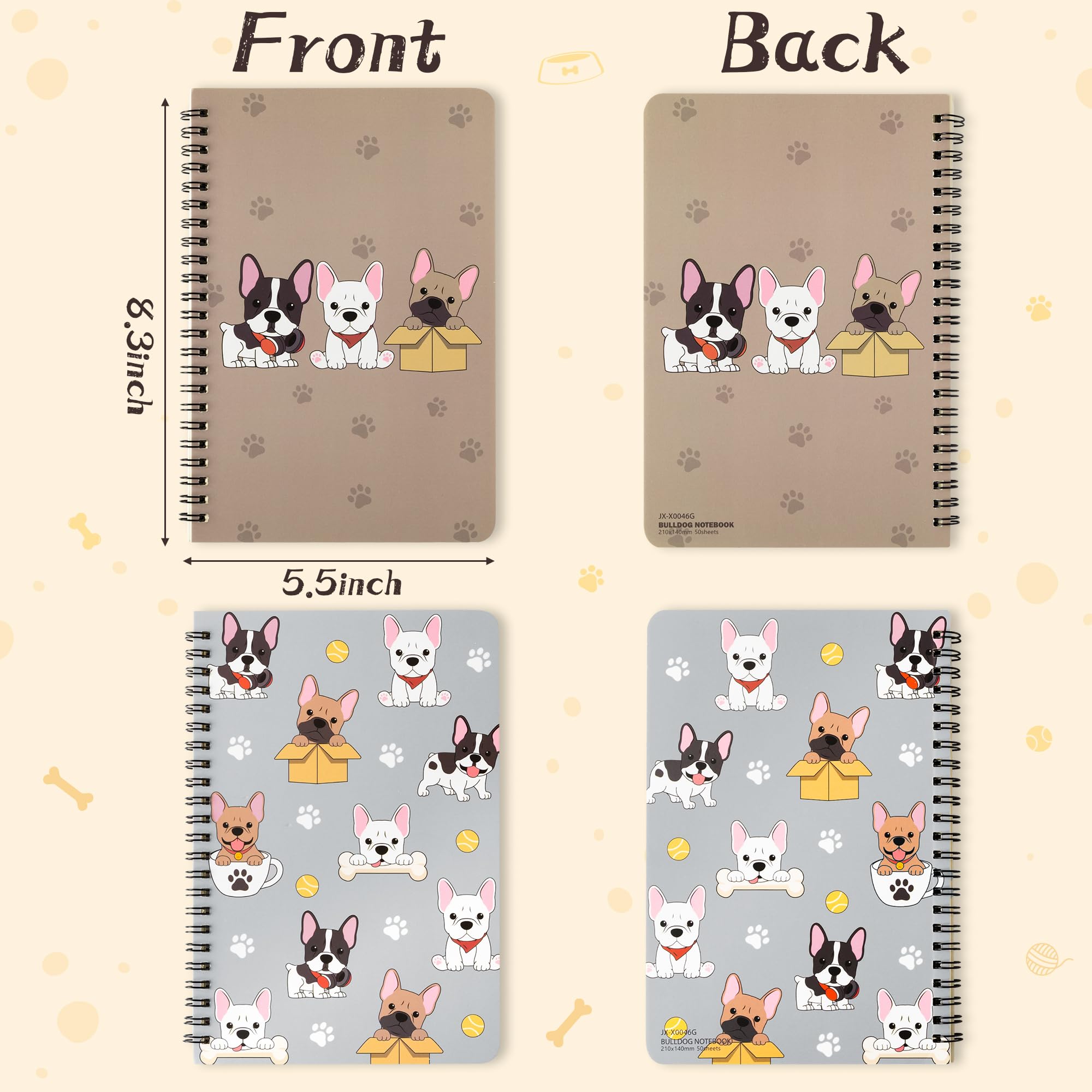 Bulldog Themed Spiral Notebook: You will get 2 pack bulldog themed spiral notebooks in different designs, and the notebook is 50 sheets and 8.3 x 5.5 inches. The cover designed with cute cartoon bulldog pattern, which is visually appealing notebooks