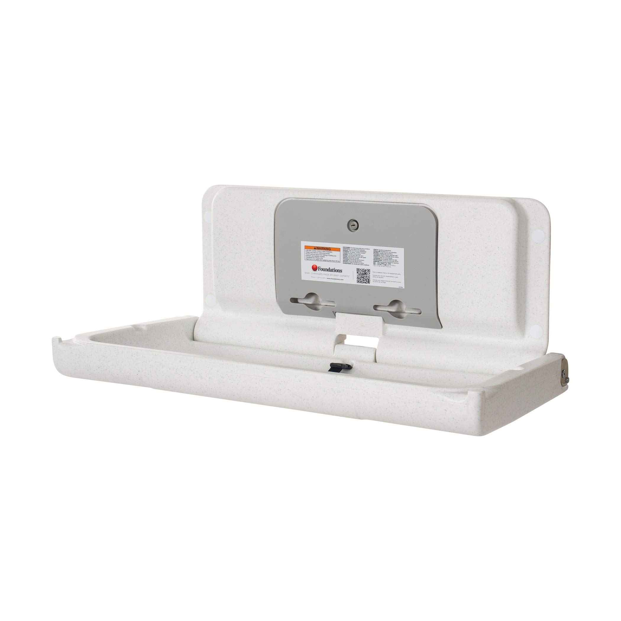 FIVE COLOR OPTIONS: The changing tables subtle design is available in five stylish color options to complement any decor, paired with a stainless steel placard with identifiable international logo to fit any architectural environment.
