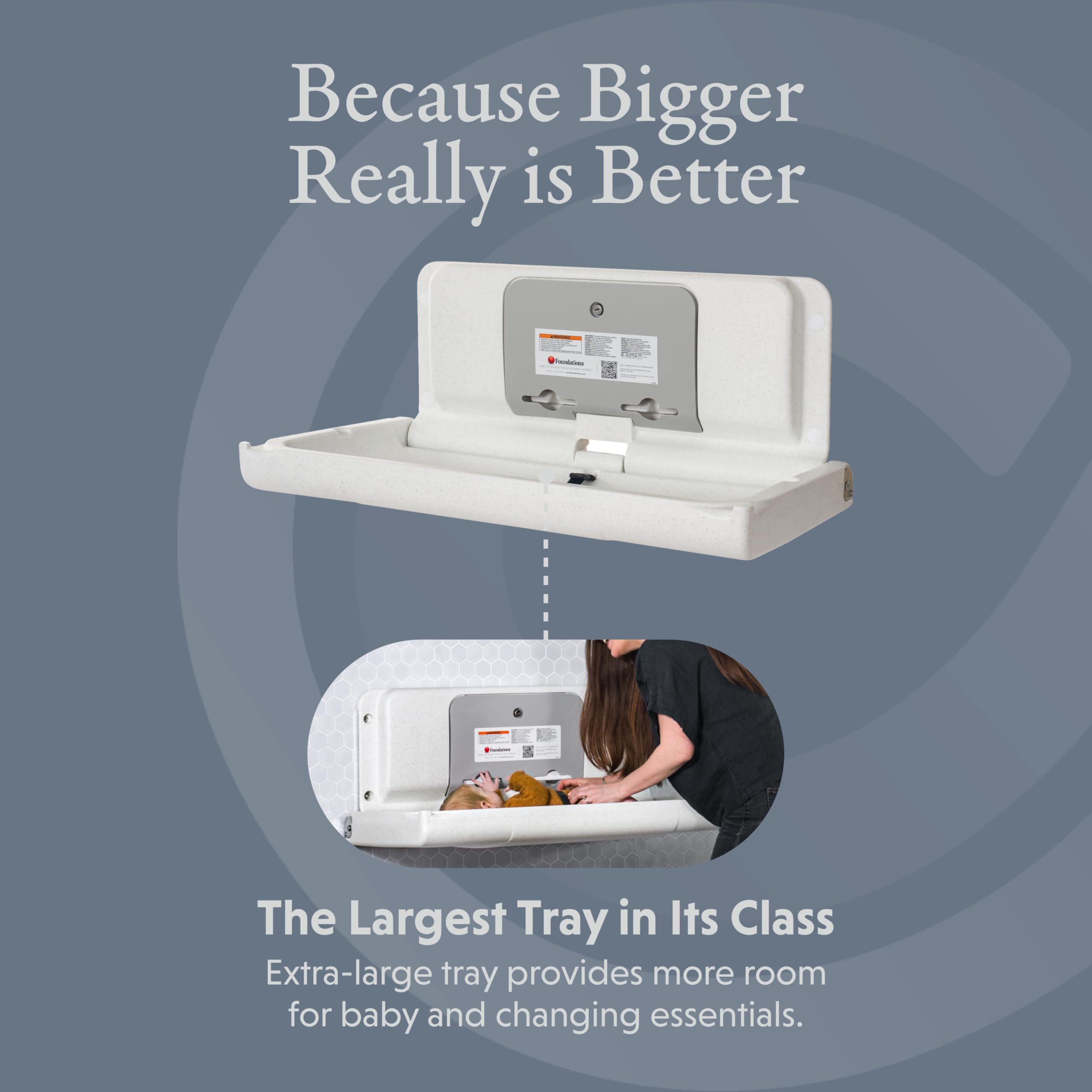 ONE PERSON INSTALLATION: The baby changing station includes all mounting hardware and exclusive EZ Mount Backer Plate that eliminates the need for structural blocking and allows for quick and efficient installation by one person.