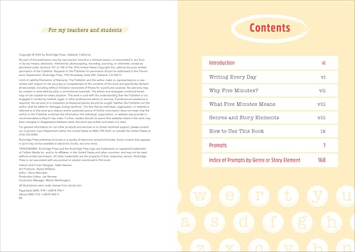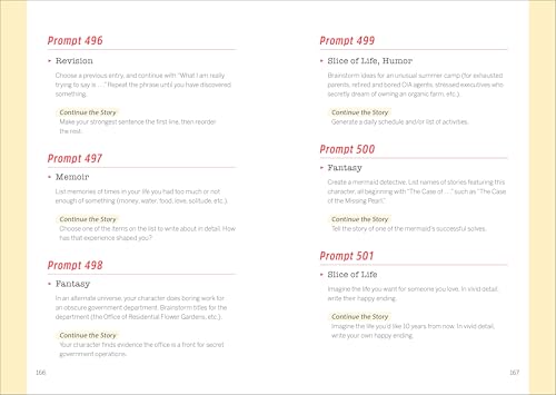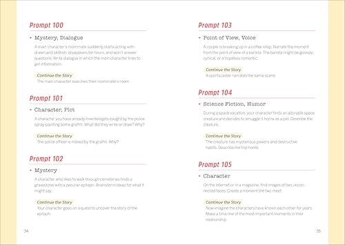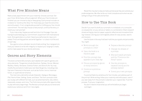 Become a better writer in 5 minutes a day Writing regularly is the best way to boost your skills and stay inspired―and this book of creative writing prompts is here to help you out! Spark your creativity with 501 short, simple prompts that encourage you to imagine, create, and improve. Just 5 minutes―The exercises in this daily writing prompt journal are quick and easy to do so you can always carve out a bit of writing time, no matter what else is going on in your life. Let go of the rules―Open-ended prompts offer just enough guidance to get you started as you practice generating fresh ideas, creative thinking, and releasing perfectionism. A mix of prompts―From a love poem to a sci-fi adventure and dialogue between kids, you'll get a chance to work with an array of genres, topics, and styles. Continue the story―Each writing activity includes an optional extra prompt that lets you expand what you wrote into something even more detailed and unique. Spark something new and build confidence in your writing this collection of 501 writing prompts!