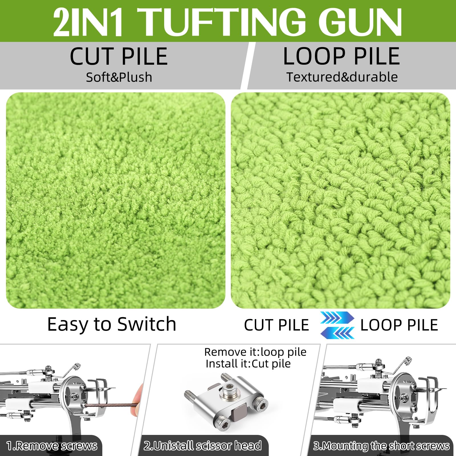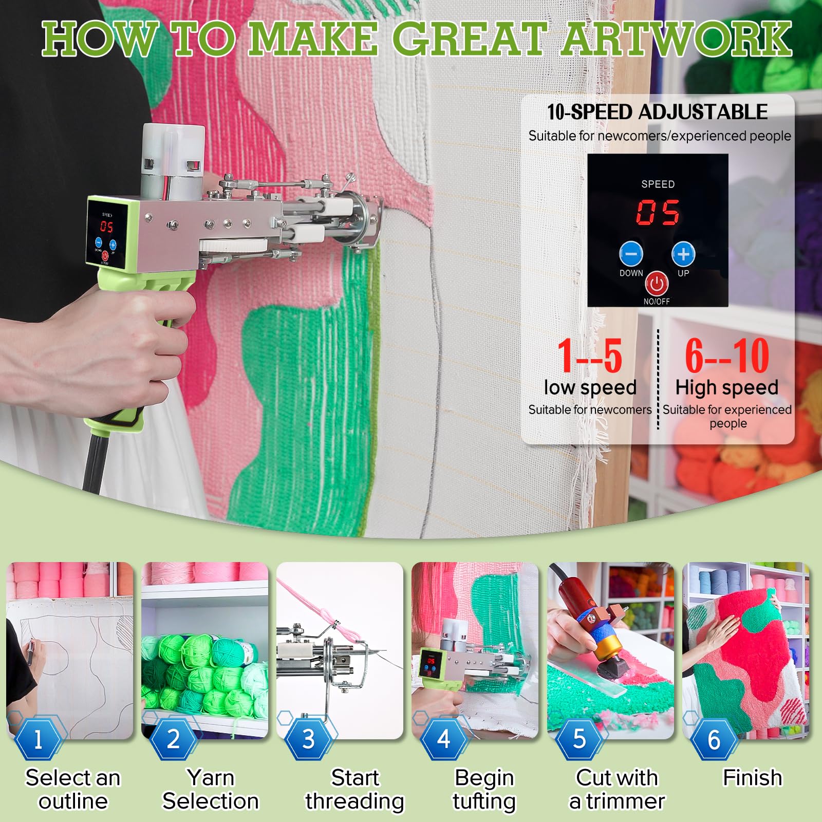 2-IN-1versatility:the tufting gun starter kit allows users to easily switch between cut and loop pile modes. tufting gun kits are perfect for those looking to expand their creative abilities. tufting gun kits provide a convenient way for crafters to quickly add a personal touch, and are also a powerful creative tool for social media creators. rug tufting guns are a great way to make your work stand out and attract more attention.