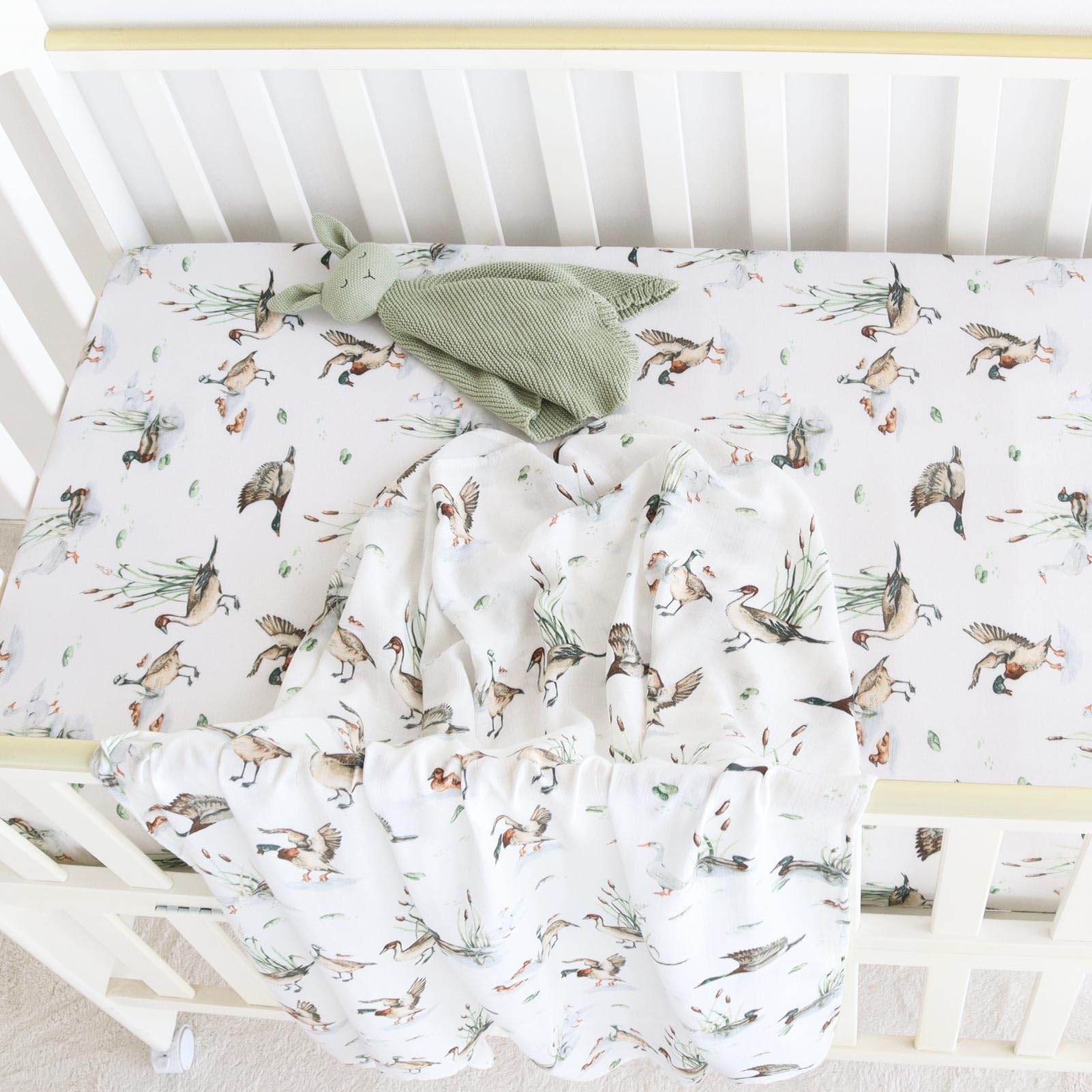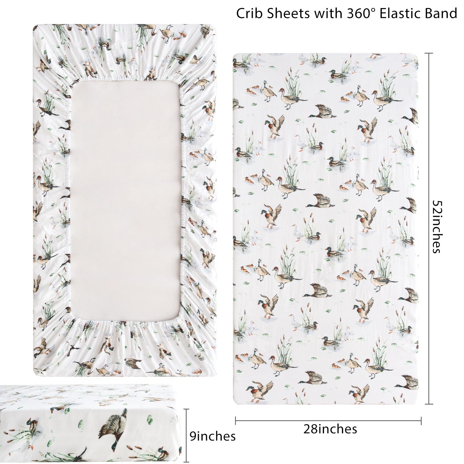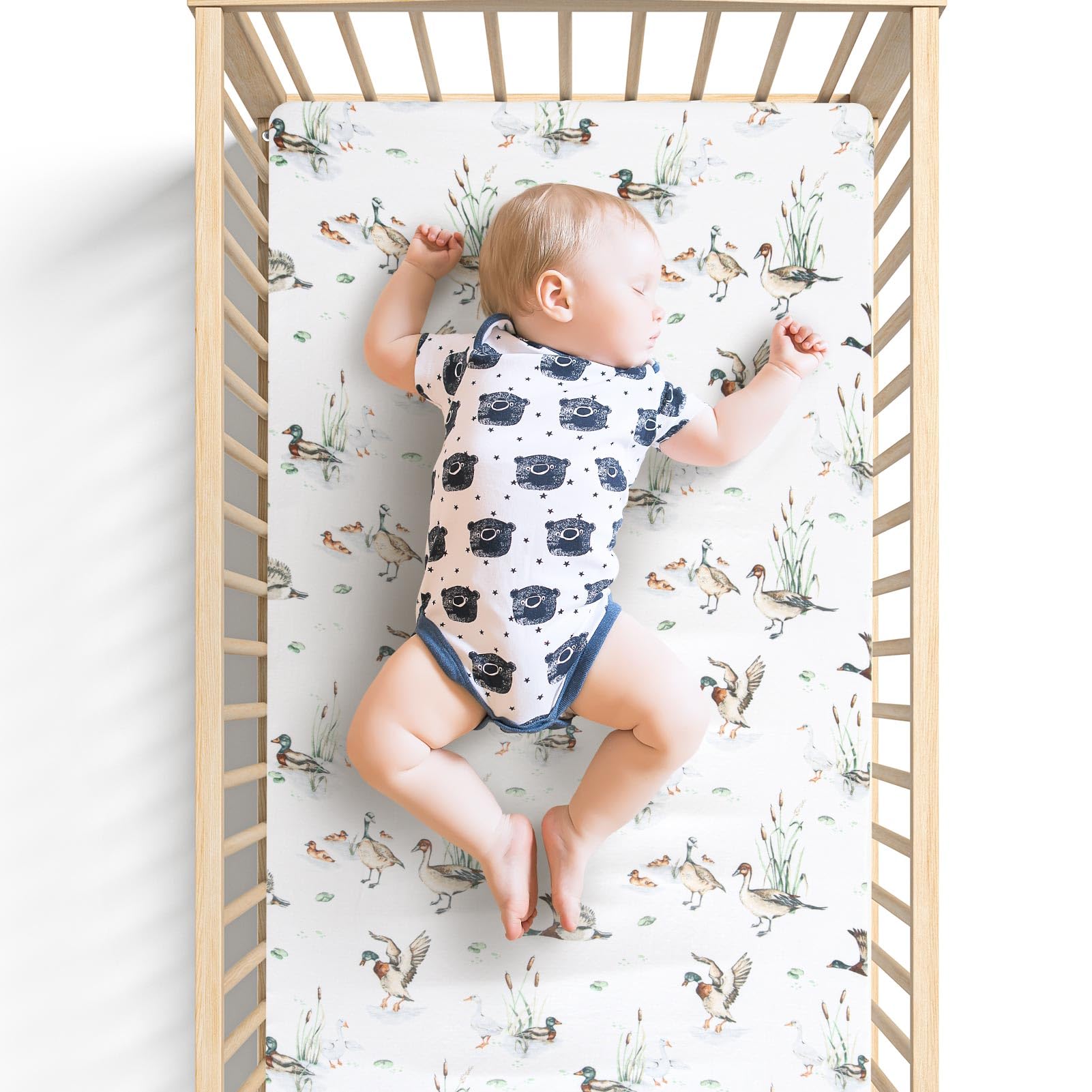 Natural Pattern - Create a duck nursery for your baby with this adorable mallard crib sheets. Perfect gift for new parents and any baby registry.