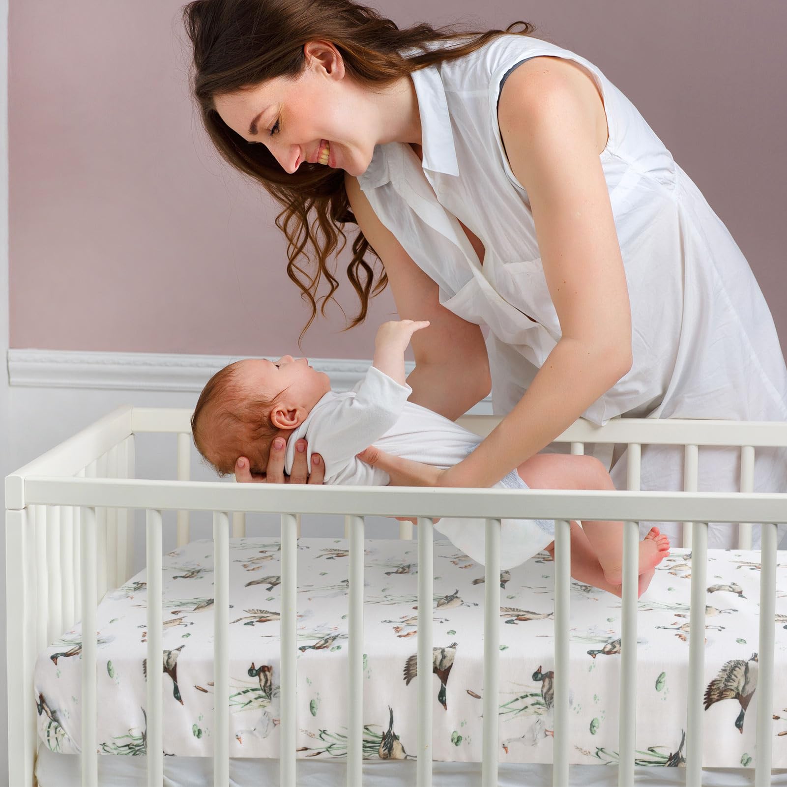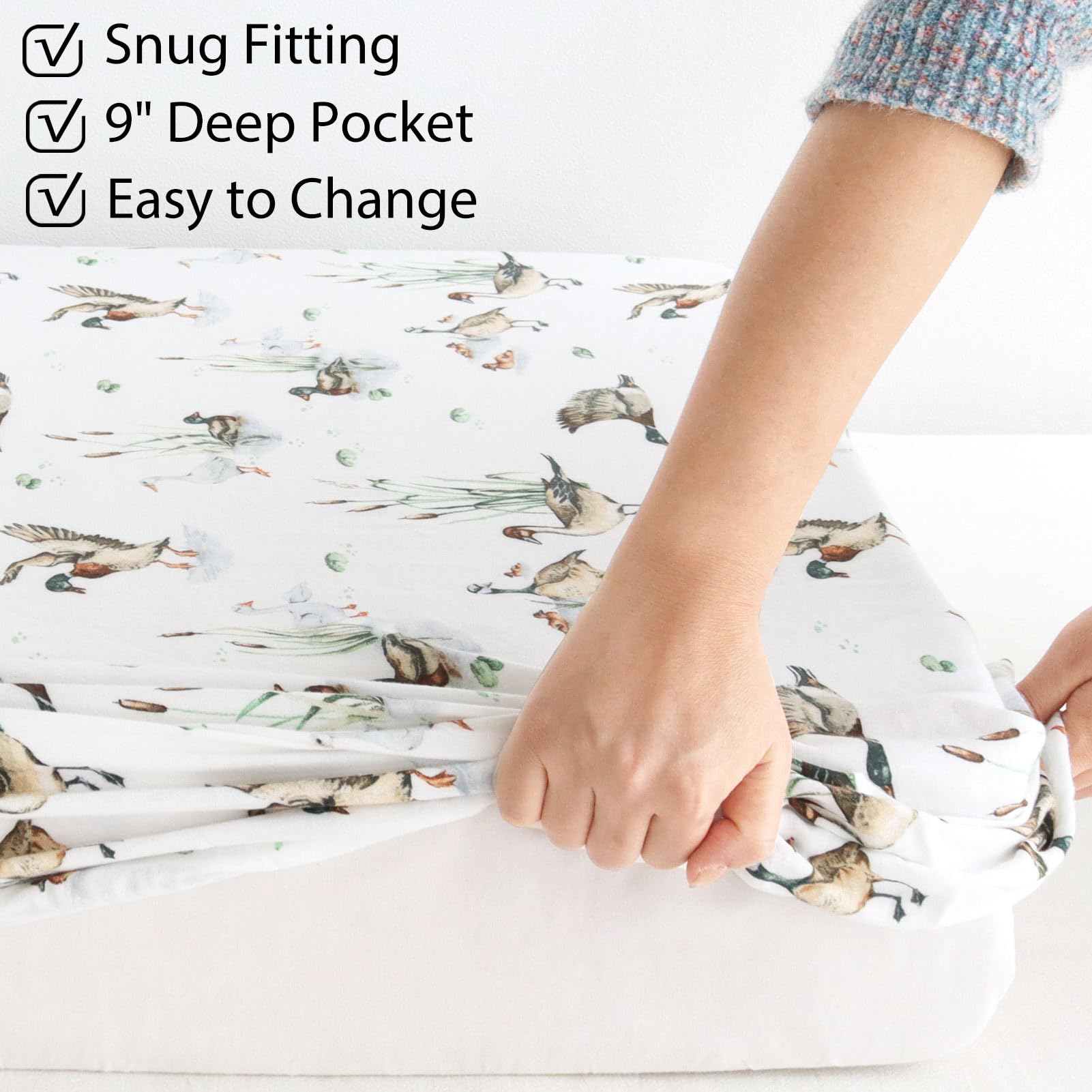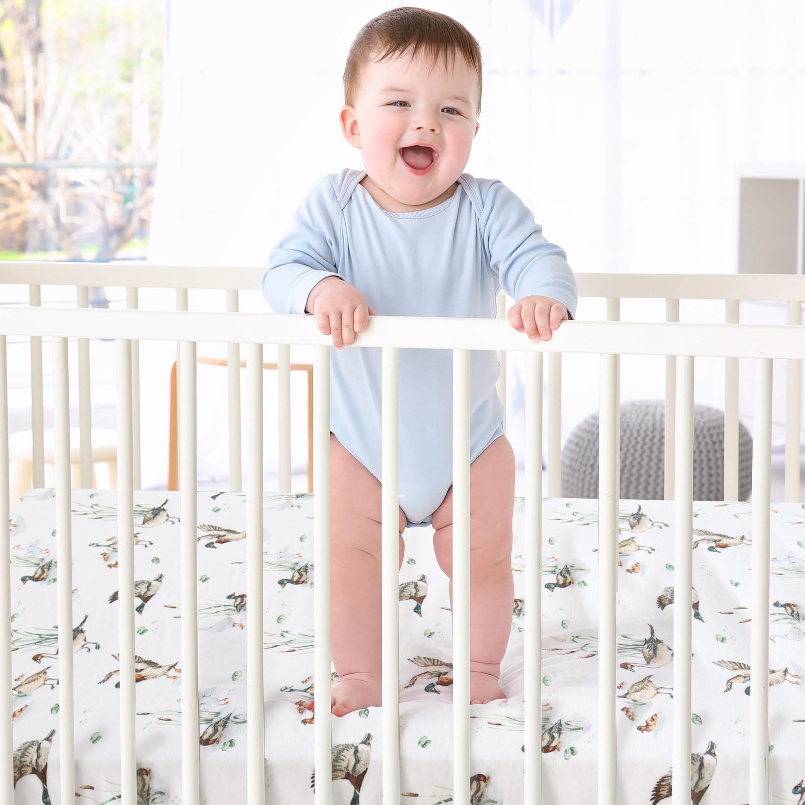 Natural Pattern - Create a duck nursery for your baby with this adorable mallard crib sheets. Perfect gift for new parents and any baby registry.