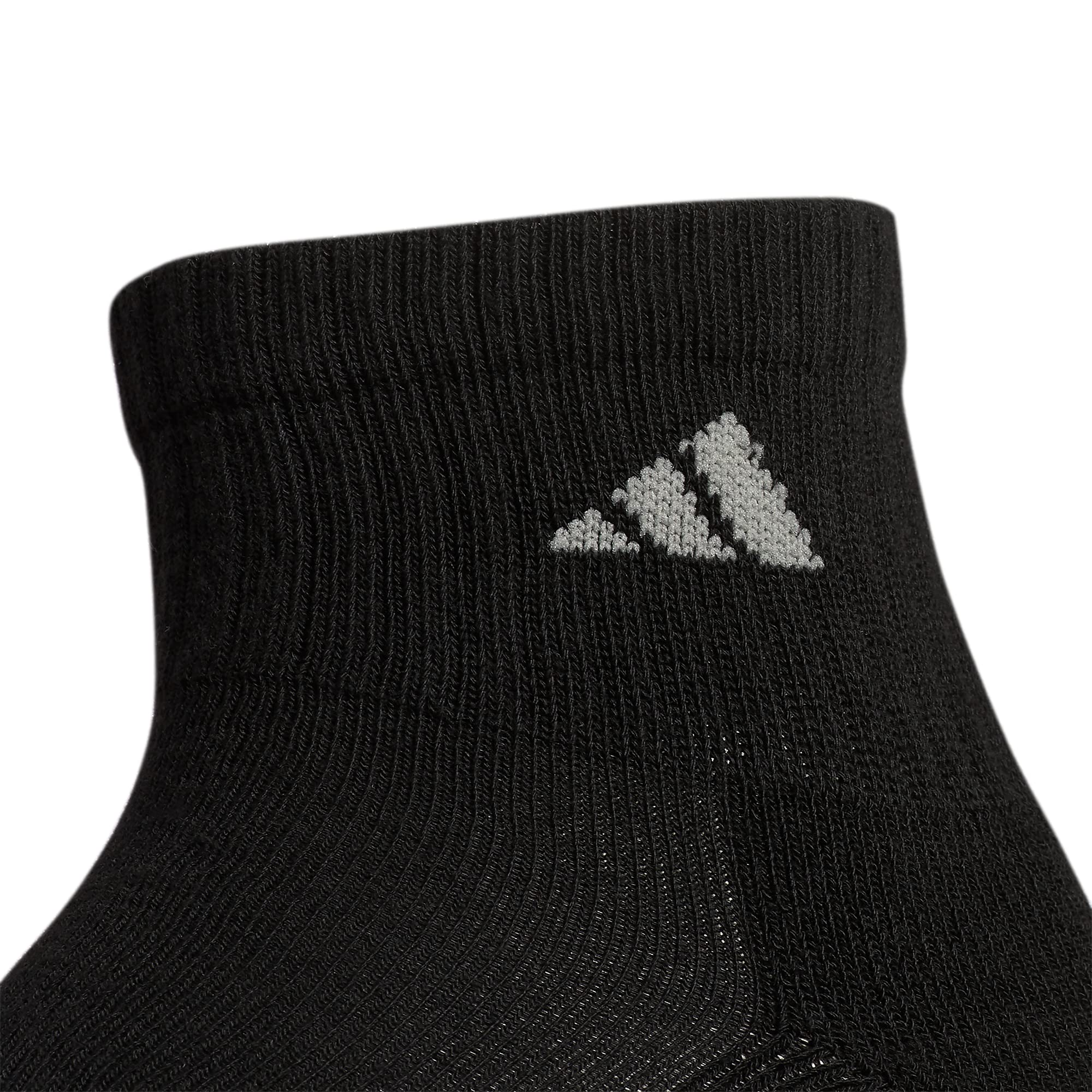 Description Experience a blend of quality, comfort, and durability with the adidas Men's Athletic Cushioned Quarter Socks, a suitable choice for those who demand the best in their daily wear. This versatile pack of socks for men offers a snug and secure fit, thanks to the innovative arch compression technology. Each pair is crafted to provide superior cushioning, making them great mens running socks for any active lifestyle. Made from moisture-wicking yarns, these socks for men keep your feet dry and comfortable, making them a practical choice as stocking stuffers for adults seeking performance and softness. Available in classic designs of white and black, these men's socks effortlessly blend with any outfit. With a focus on durability and comfort, this pack of socks ensures you'll have the reliable support you need, whether you're hitting the gym or just going about your day.