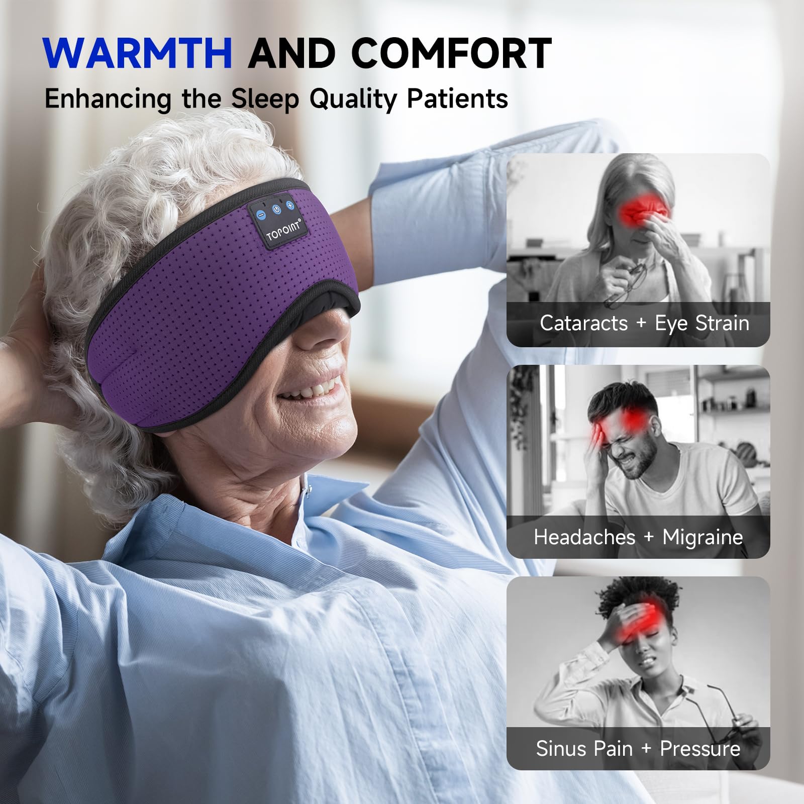 𝐓𝐚𝐤𝐞 𝐓𝐎𝐏𝐎𝐈𝐍𝐓 𝐒𝐥𝐞𝐞𝐩 𝐇𝐞𝐚𝐝𝐩𝐡𝐨𝐧𝐞𝐬 𝐀𝐧𝐲𝐰𝐡𝐞𝐫𝐞 - Our sleep mask, crafted from 95% 5A-grade cotton, is perfect for seniors. It's an ideal option for those dealing with insomnia caused by headaches, cataracts, or migraines. This sleep mask is a considerate gift for men, women, girls, and boys.