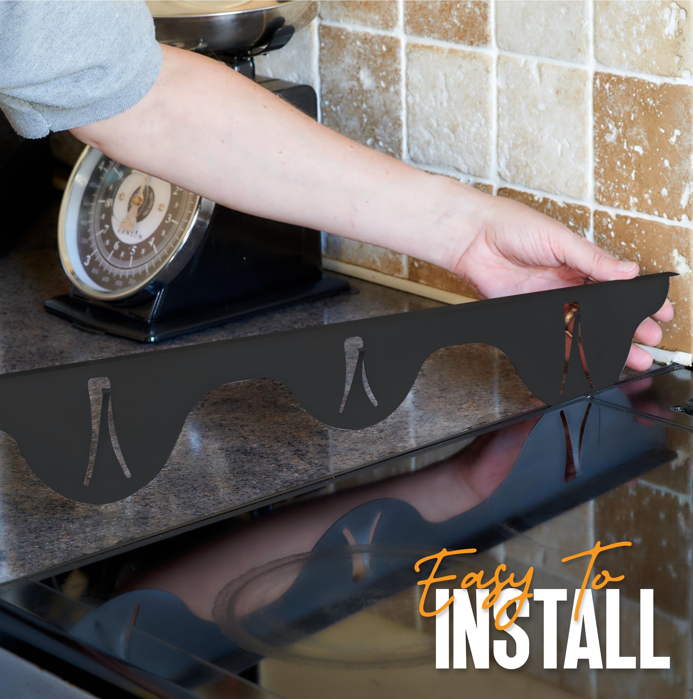 UNIVERSAL FIT & EASY TO INSTALL: Our universal stove gap guards sit perfectly in place on all stovetops. Installation is a breeze - simply remove the protective film on the stainless steel stove gap cover and push it into your oven side gap. No tools or hardware required. Please ensure that the length of our metal gap covers (25.4 Inches) fit your gap and does not exceed your cabinet edge