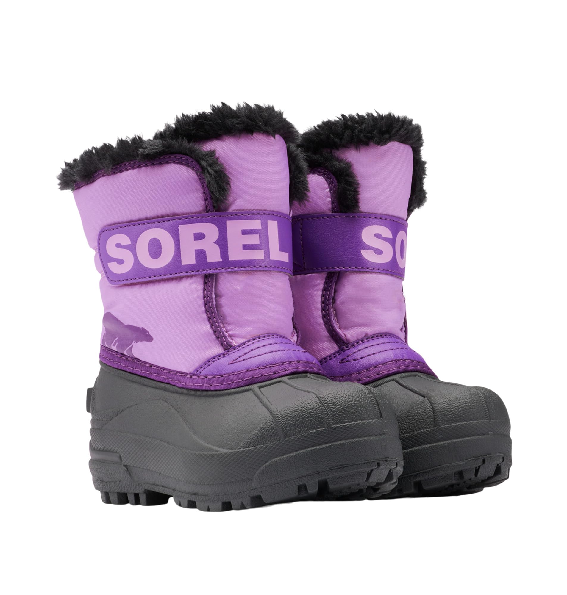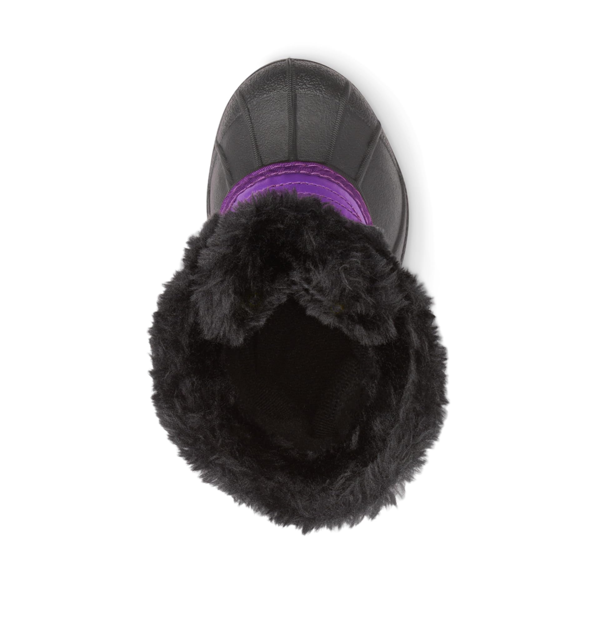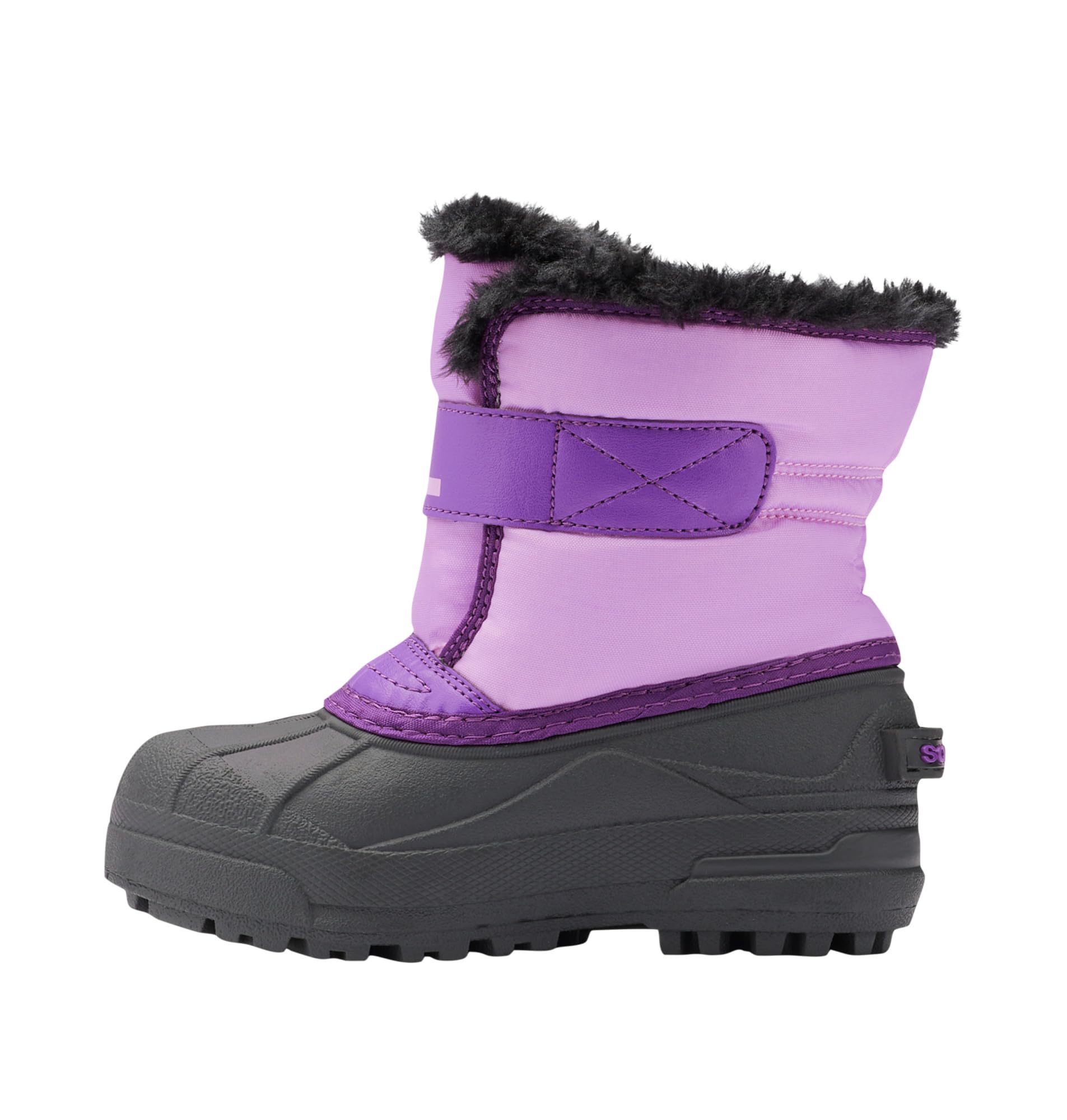 Description COMMAND THE SNOW They'll show the snow who’s boss with this ultra-warm boot. It features 200g of cozy insulation, plus a soft fleece lining, and easy-to-use velcro straps. The burly sole provides enhanced traction on slick terrain, whether they’re toddling up the sled hill or making snow angels.