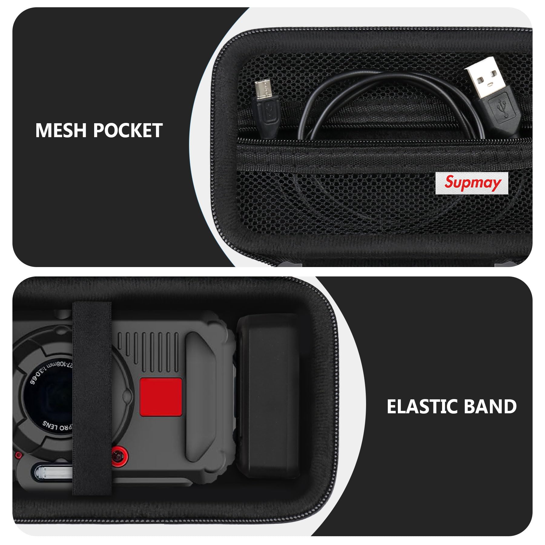 Supmay Carrying Case Compatible with KODAK PIXPRO WPZ2 Rugged Waterproof Shockproof Dustproof WiFi Digital Camera, Travel Case with Mesh Pocket fits USB Cable, SD Card, Battery, Charging Plug, Black