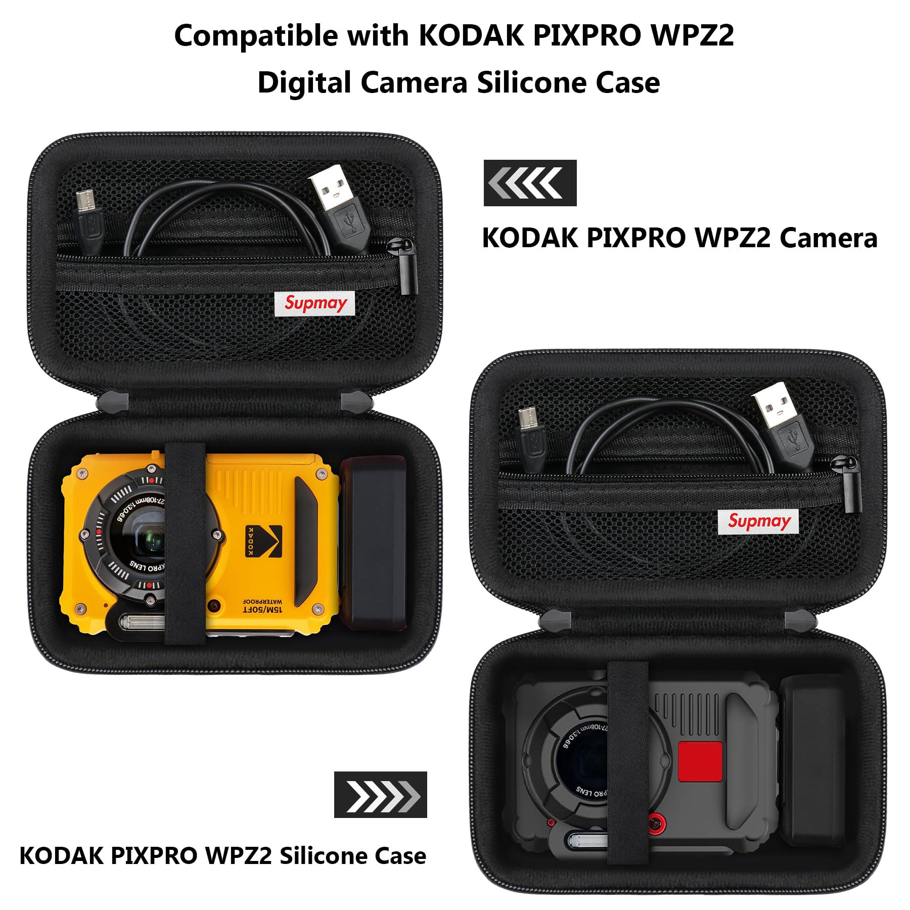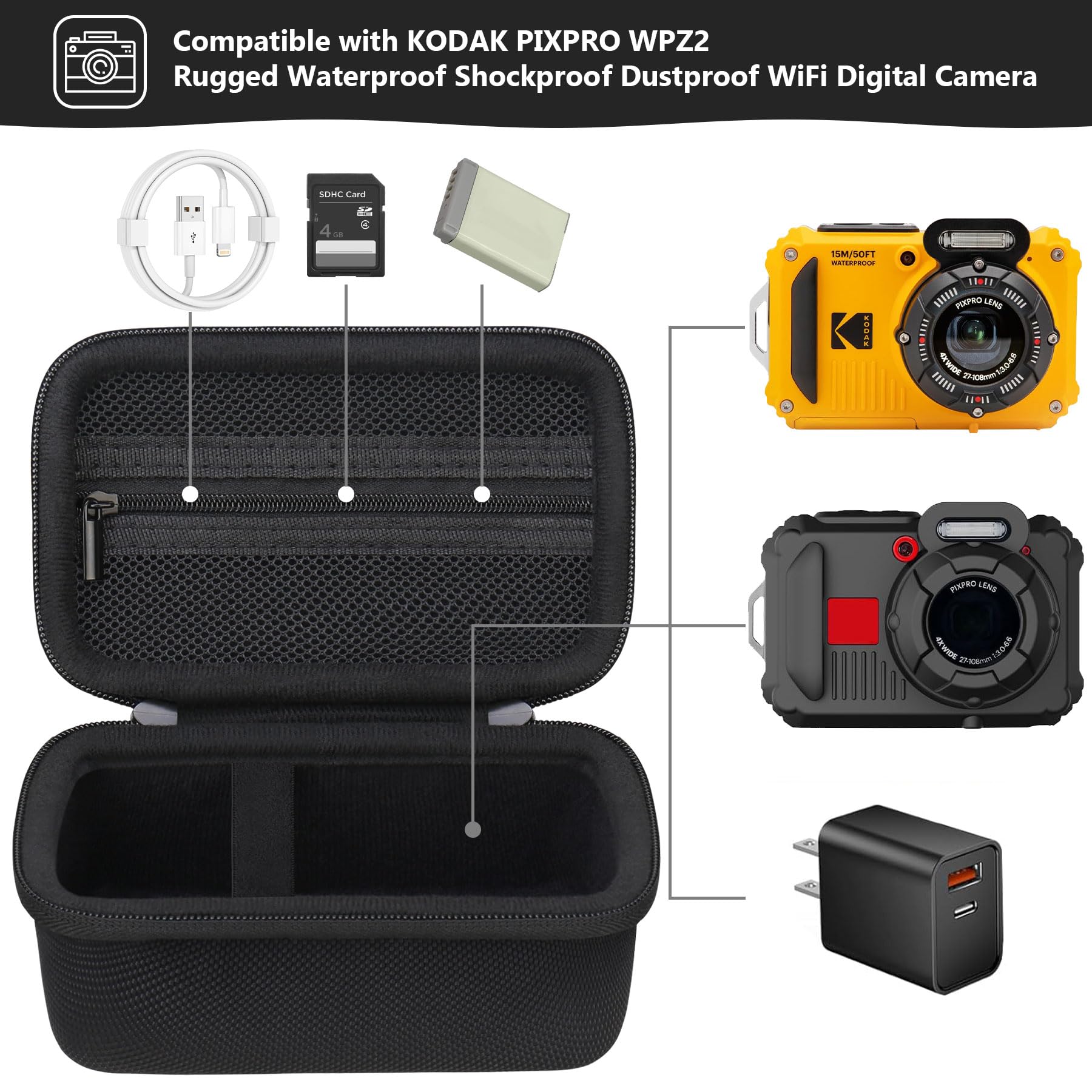 UNIQUE DESIGN: Case for kodak pixpro wpz2 features a double zipper design, allowing you to easily take out your beloved kodak pixpro wpz2 rugged camera for shooting. Extra zipper mesh bag for storing kodak pixpro wpz2 battery, micro sd card, cable, or other kodak pixpro wpz2 accessories. Elastic band keeps your kodak pixpro wpz2 firmly in place without worrying about it sliding and damaging.