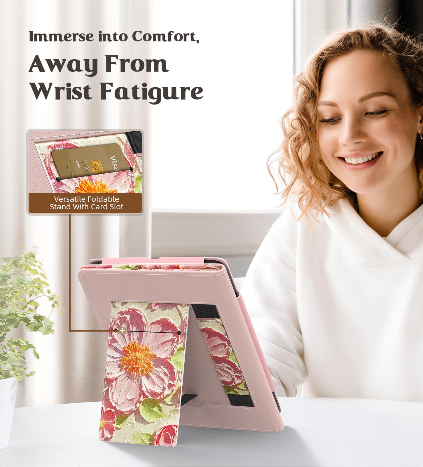 Making Reading Easier: Stand design makes reading more convenient, build-in card slot can store your cards and cashes