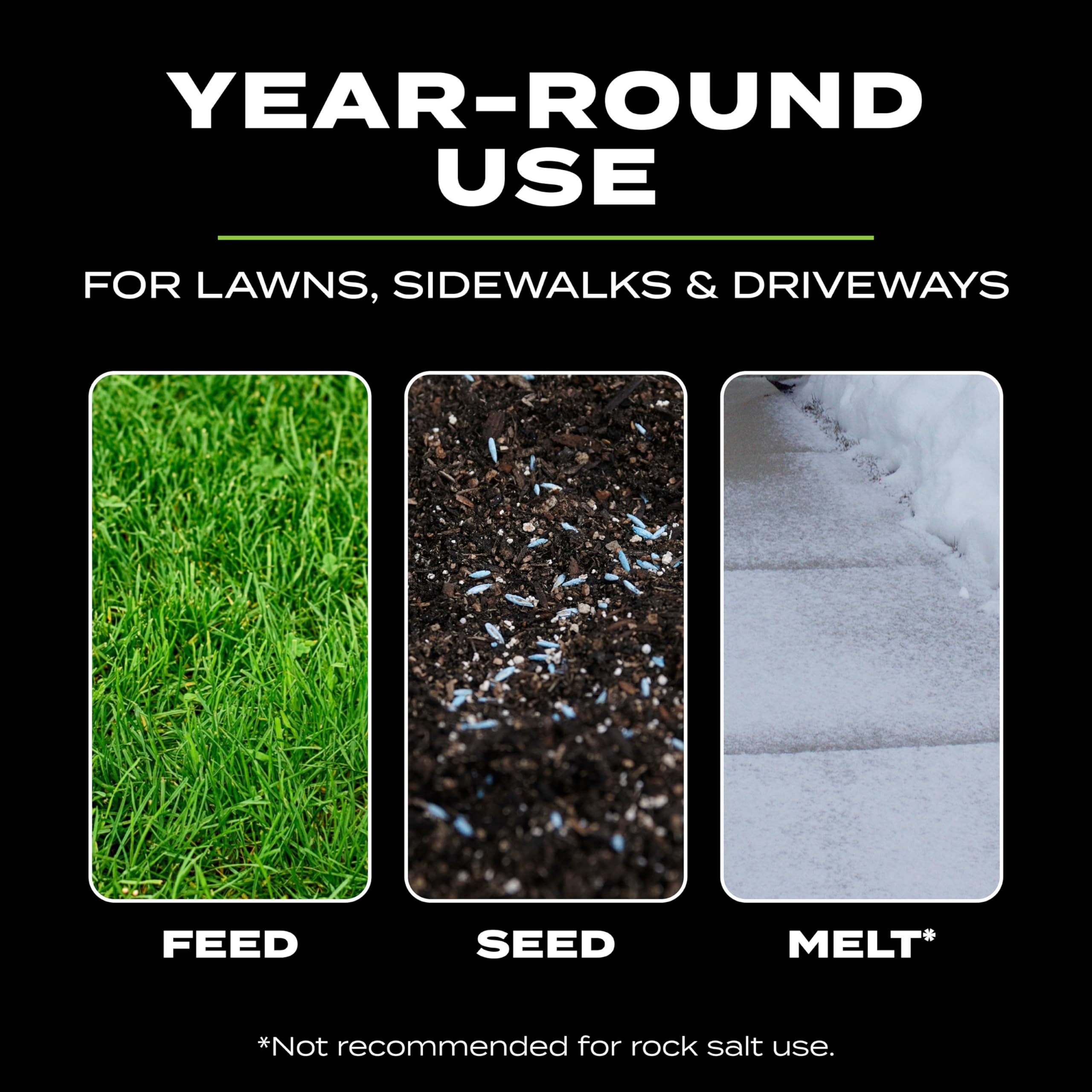 USAGE: These hand spreaders for lawns are great for year-round use to seed, fertilize, salt and ice melt