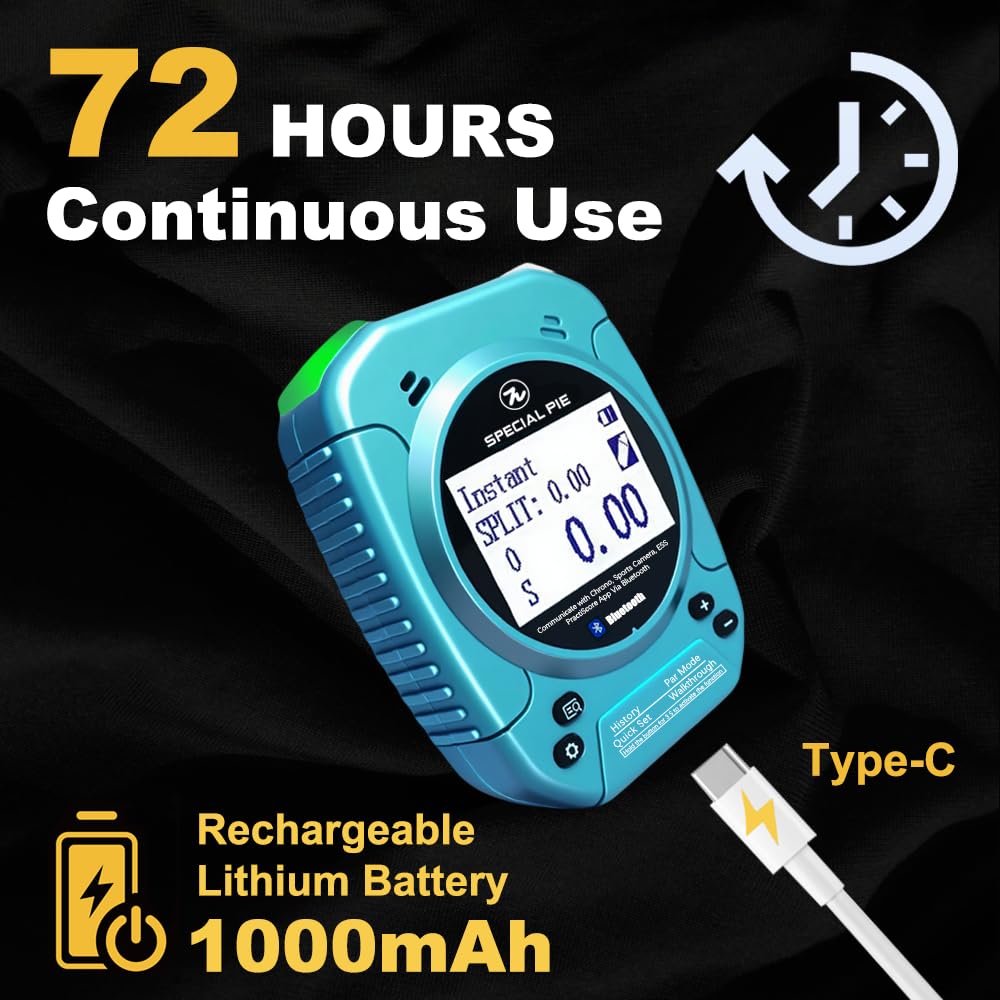Super Battery Life: Extra-large battery capacity, charges with a USB-C cable, can work 72 hours of continuous operation on a full charge. The shot timer will automatically shut down after 5 minutes of non-operation to conserve power