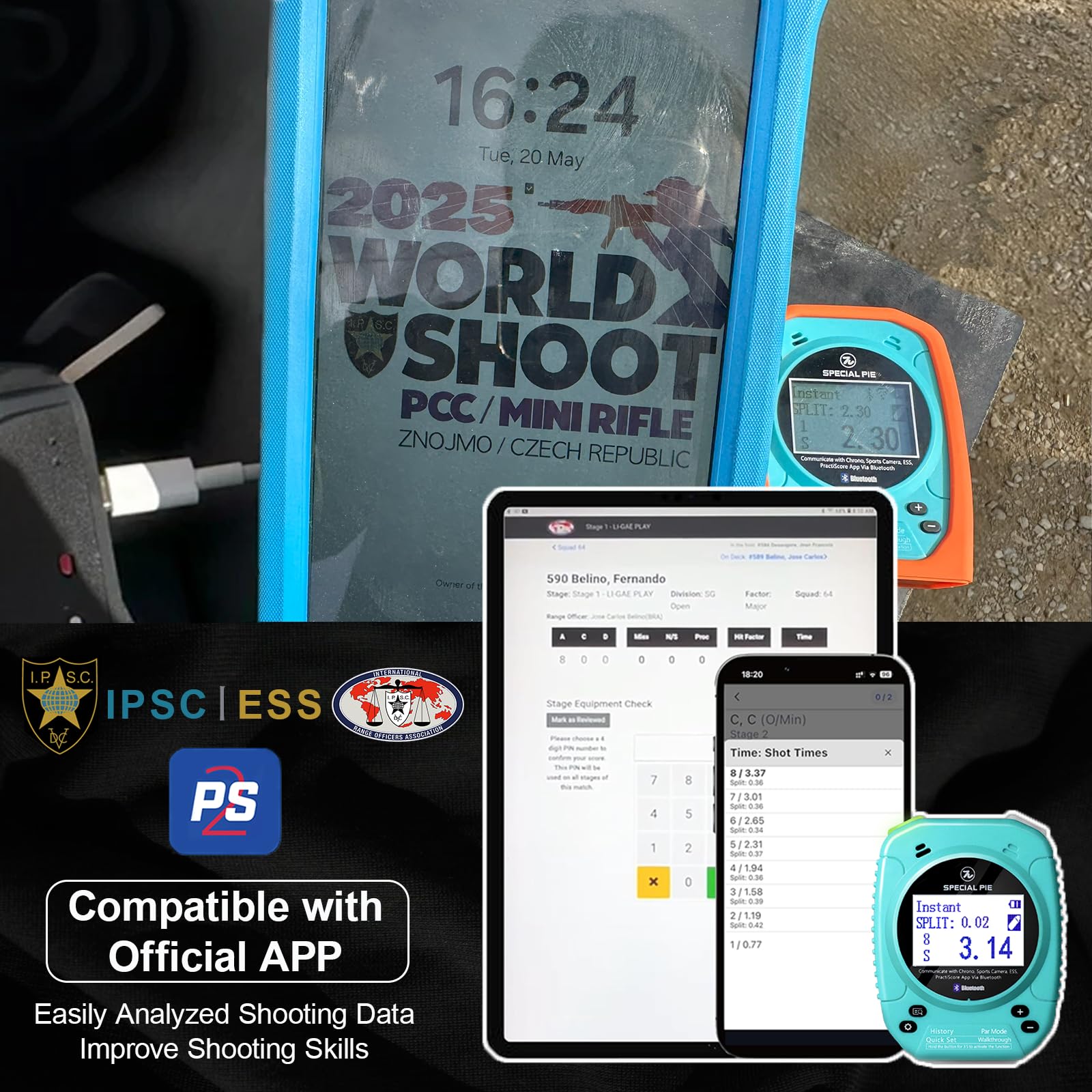 Bluetooth and Official APP: “Practiscore 2” APP and “IPSC ESS” Software are commonly used applications for official competitions. Use official shot timer helps you to adapt faster to the scenarios in the competition and improve shooting