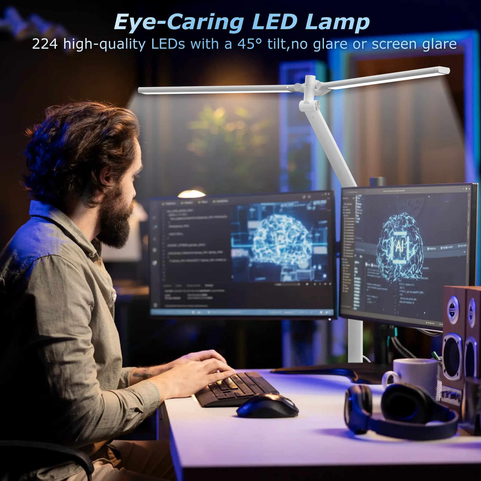 Horizontal and Vertical Rotating Dual Arms: Our led desk lamp features 6 rotatable joints and 2 wide lamp arms that can be freely adjusted both vertically and horizontally. Whether you need focused spot lighting or broad illumination, the adjustable arms meet your needs. The top can also be rotated to fine-tune the light direction and position. This flexibility ensures optimal lighting, reduces eye strain, and enhances comfort for work and reading