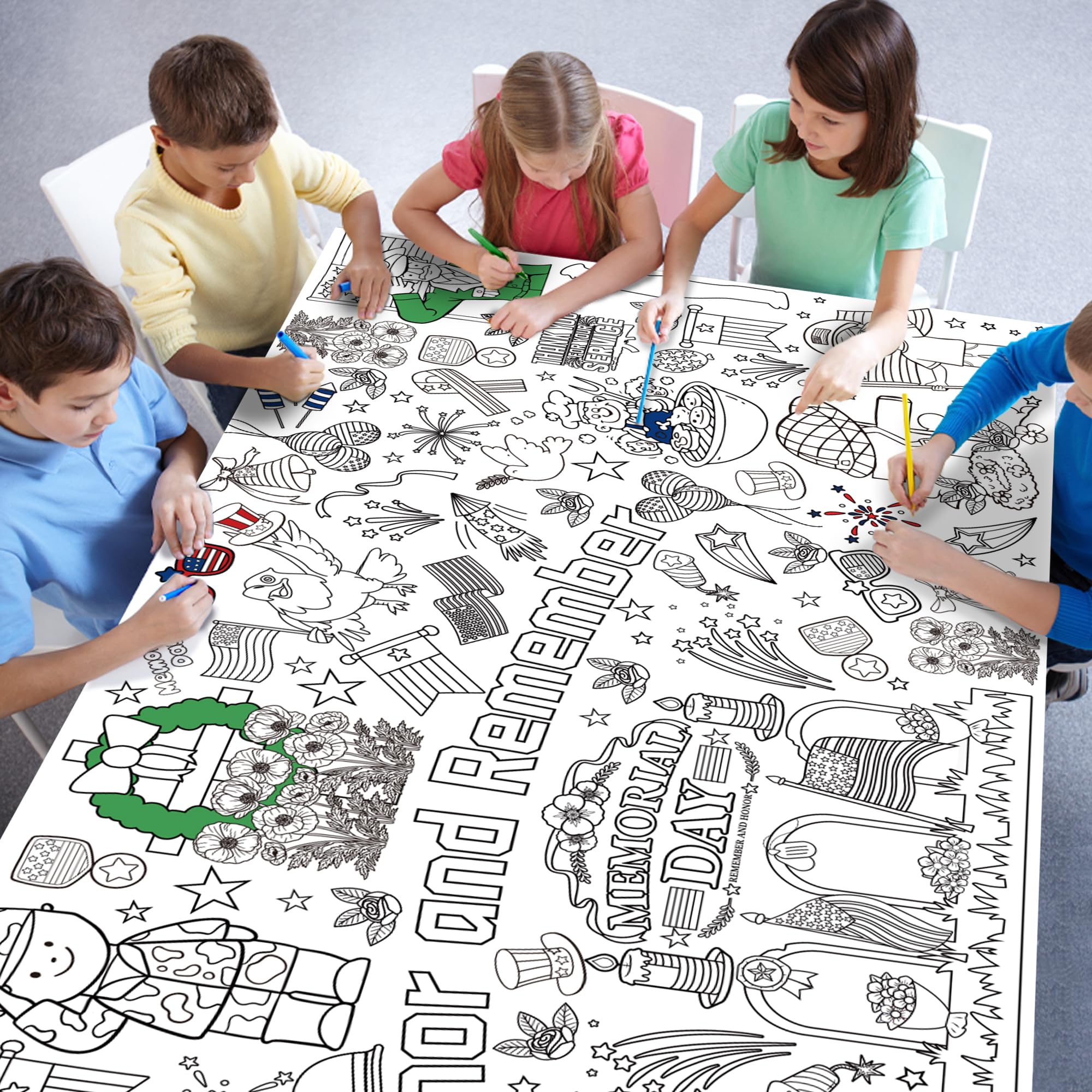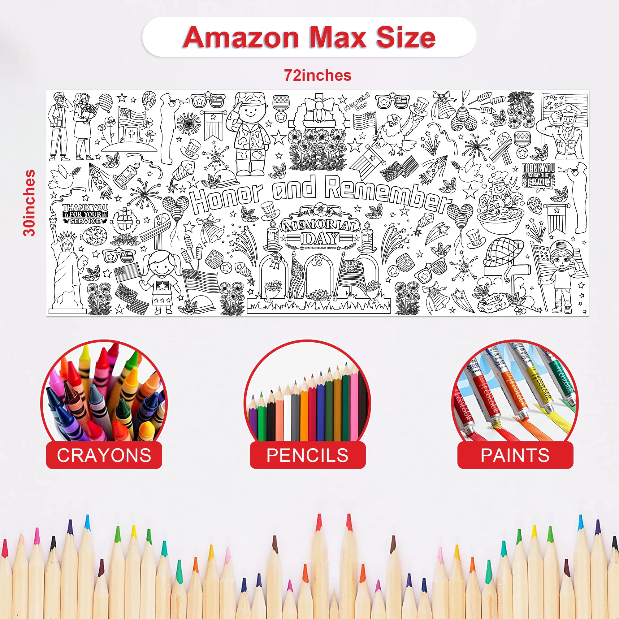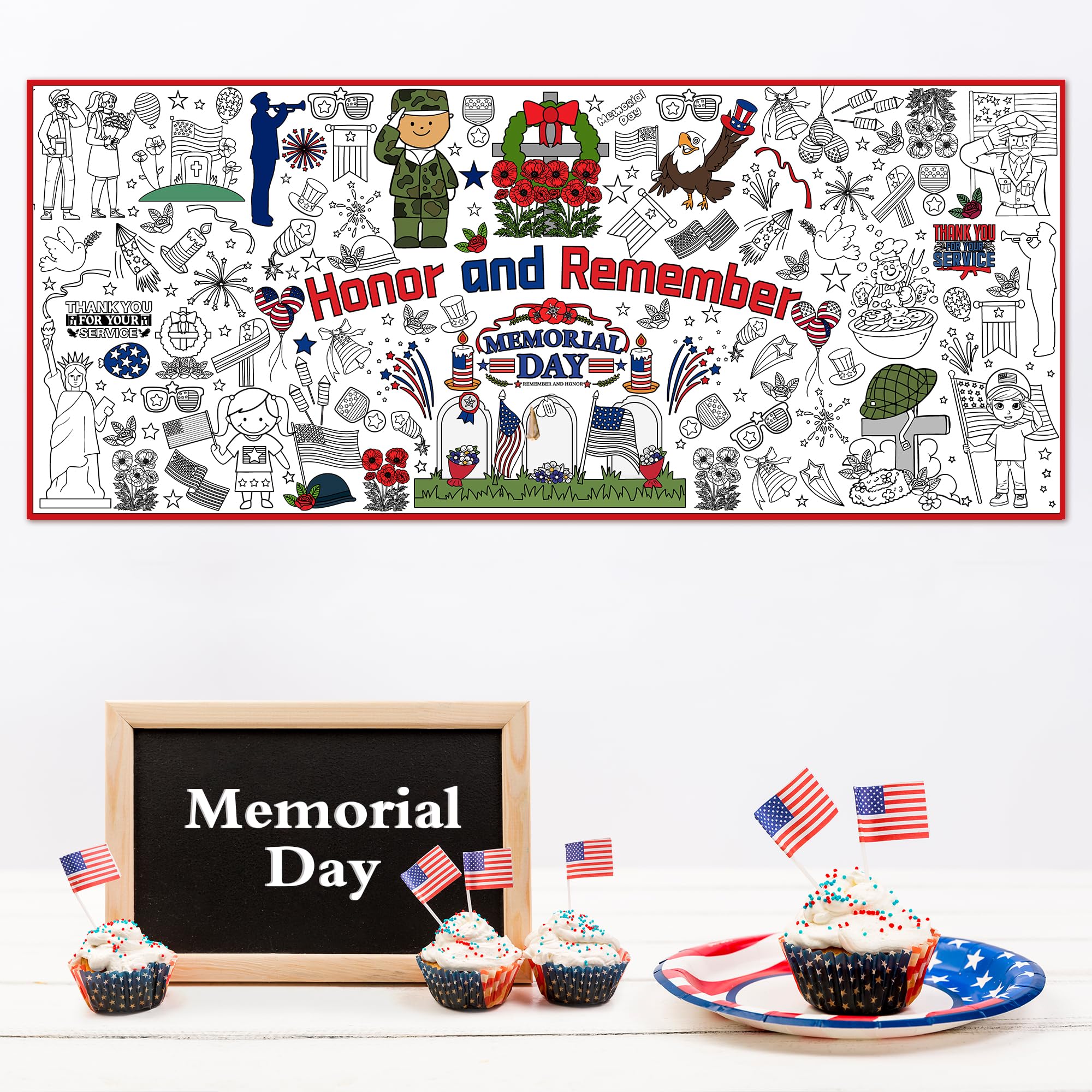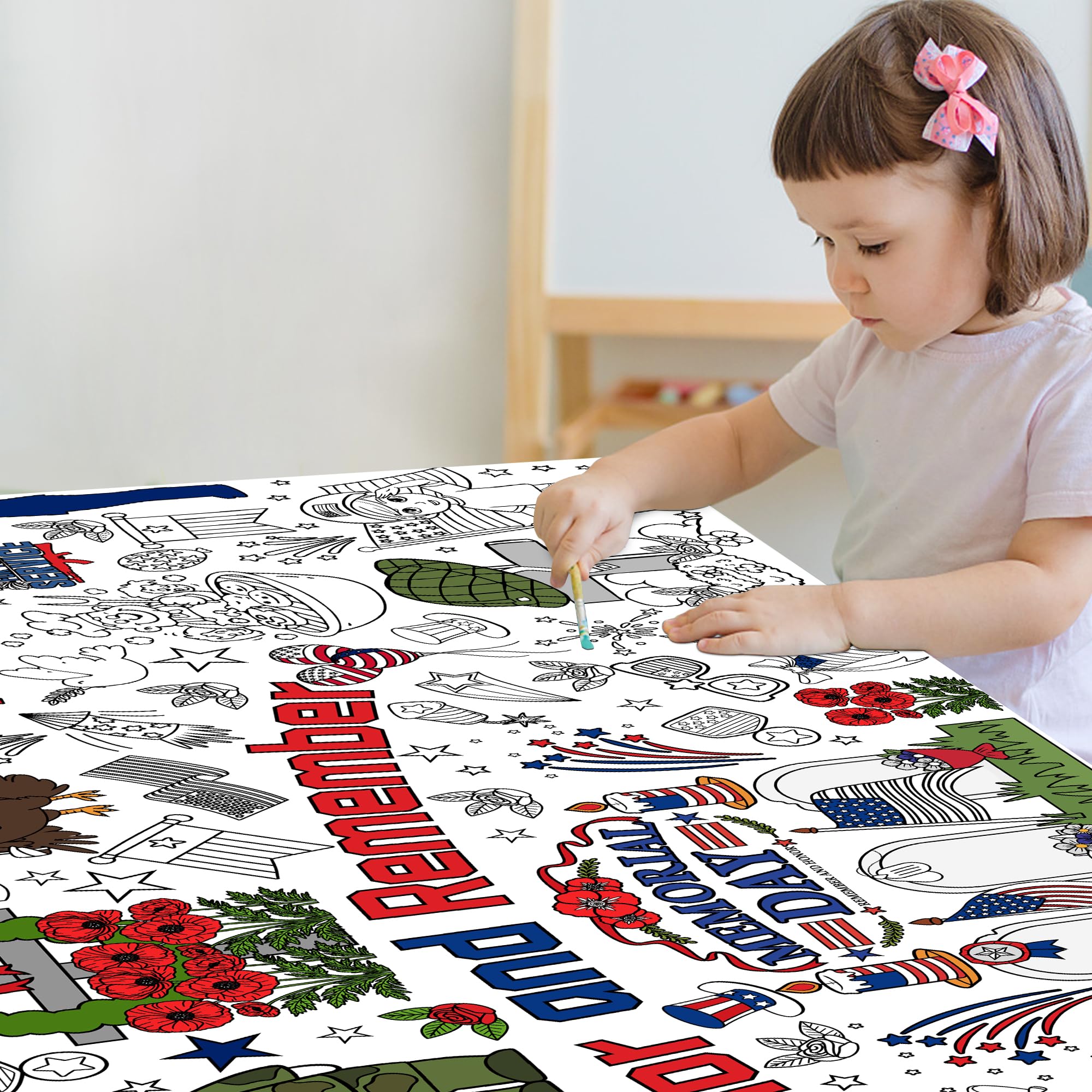 [Giant Coloring Poster]:Memorial Day banner.The size of this large coloring poster not only helps create a large arts and crafts area...it also can serve as a tablecloth, keeping your table clean from the kid's messes.Memorial Day decor.