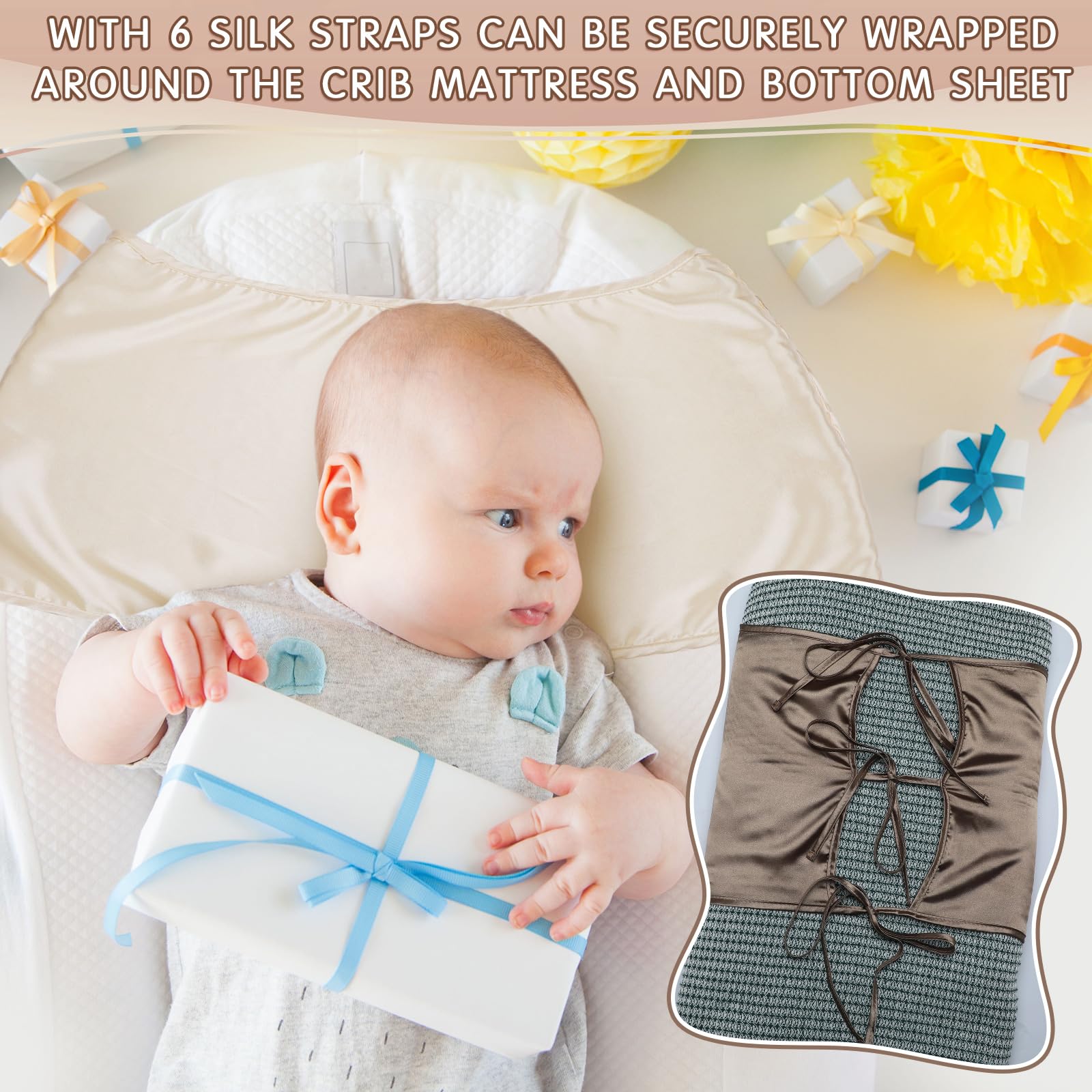 Soft and Comfortable: the satin bassinet sheet is made of satin silk material, reliable and thick, soft and comfortable, will not easy to break or tear; And the satin bassinet sheet can reduce friction at night, prevent frizz and breakage, reduce hair loss and the formation of bald spots in infants