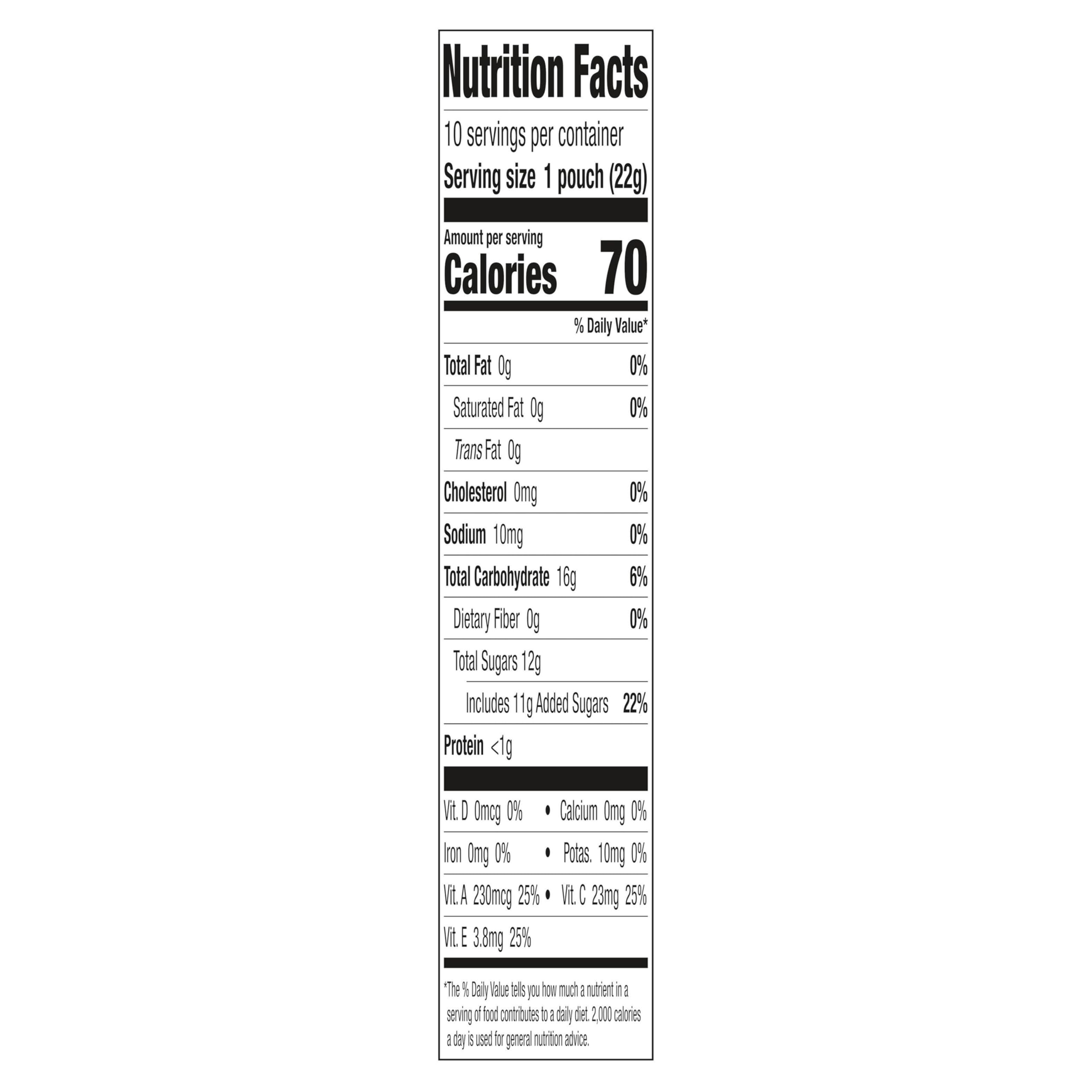 PUP PACKED WITH HEROIC POWERS: The funnest fruity snacks in Adventure City are also fat free and an excellent source of Vitamin A, C, and E. Plus, they're only 70 calories per pouch