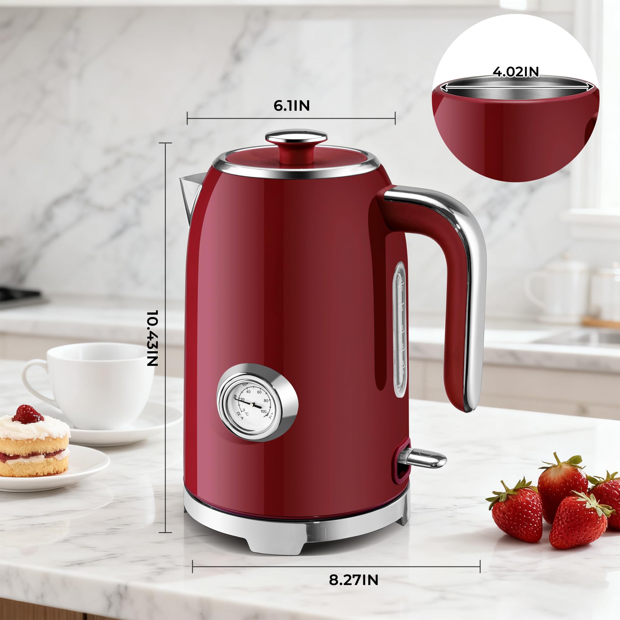 PLEASING TO THE EYE丨MAKING TEA EASILY: Incorporating a vintage aesthetic, SUSTEAS updates the stalwart electric tea kettle with modern hues and features, and the classic lines and easy-to-read thermometer offer a bit of timeless old-world style. The ergonomic heat-resistant PP handle is designed for easy, stay-cool pouring. The honeycomb filter and the V-shaped gathering spout make the pouring water concentrated, and it will not drip and wet the table top