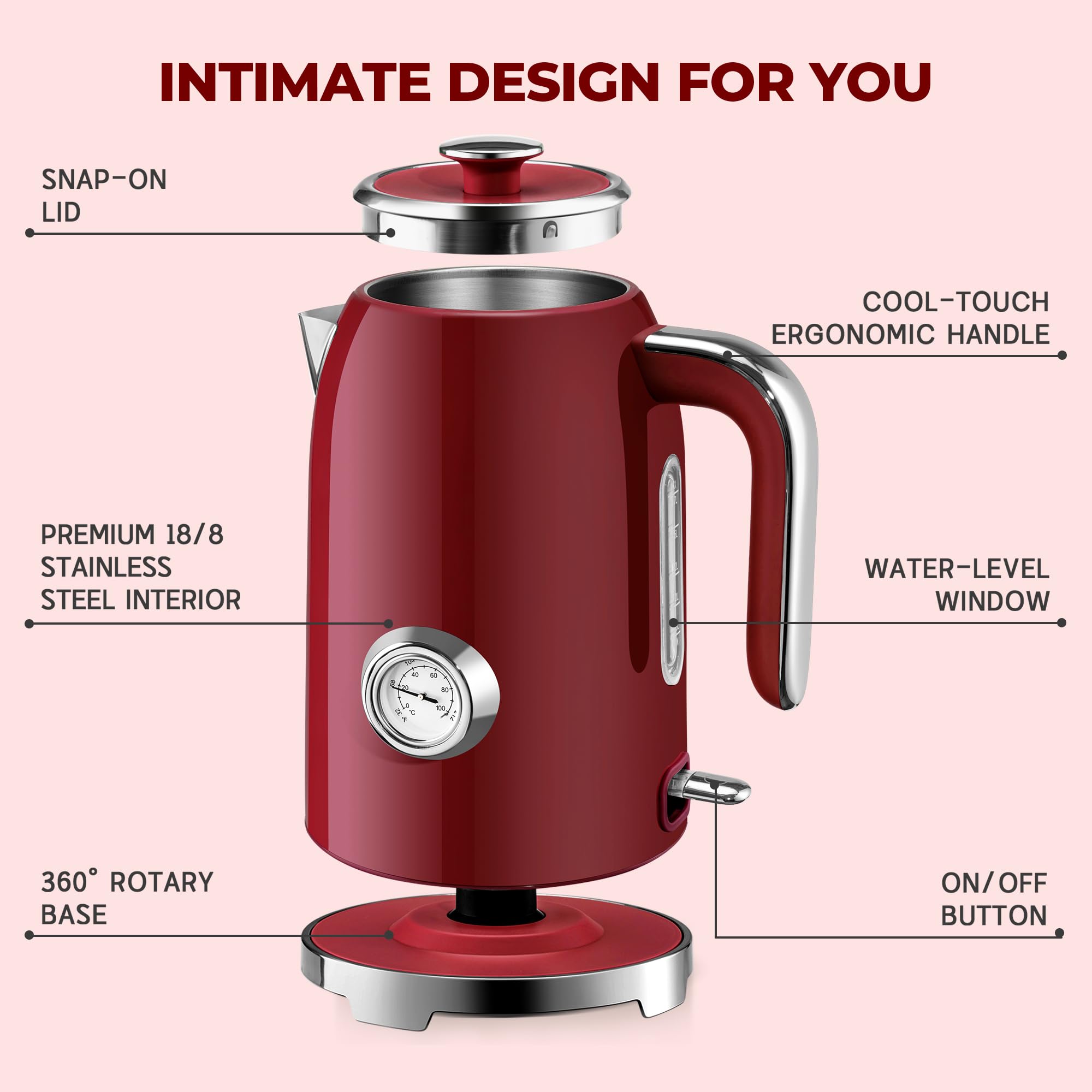 EXCELLENT WORKMANSHIP AND DESIGN: The electric kettle features a lift-off lid and wide-diameter design, making it easier to clean and catch water. The snap design of the lid increases stability and makes pouring safer. The base combines storage and non-slip features, which is both practical and beautiful