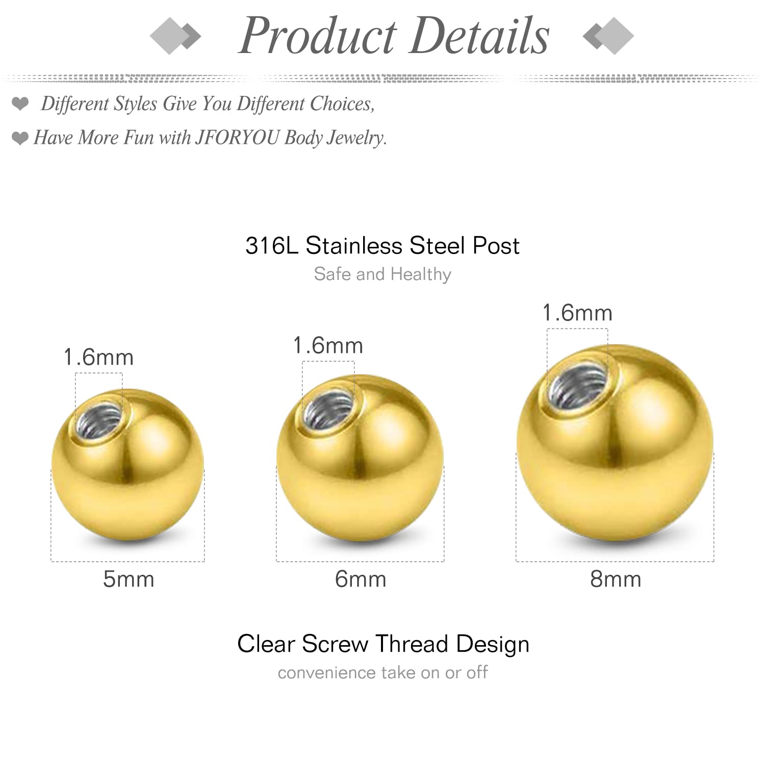❤ Size: Fit For 14 Gauge (1.6 MM) Externally Threaded Piercing Jewelry, Ball Size: 13/64"(5 MM),1/4"(6 MM), 5/16"(8 MM). Color: Gold Tone
